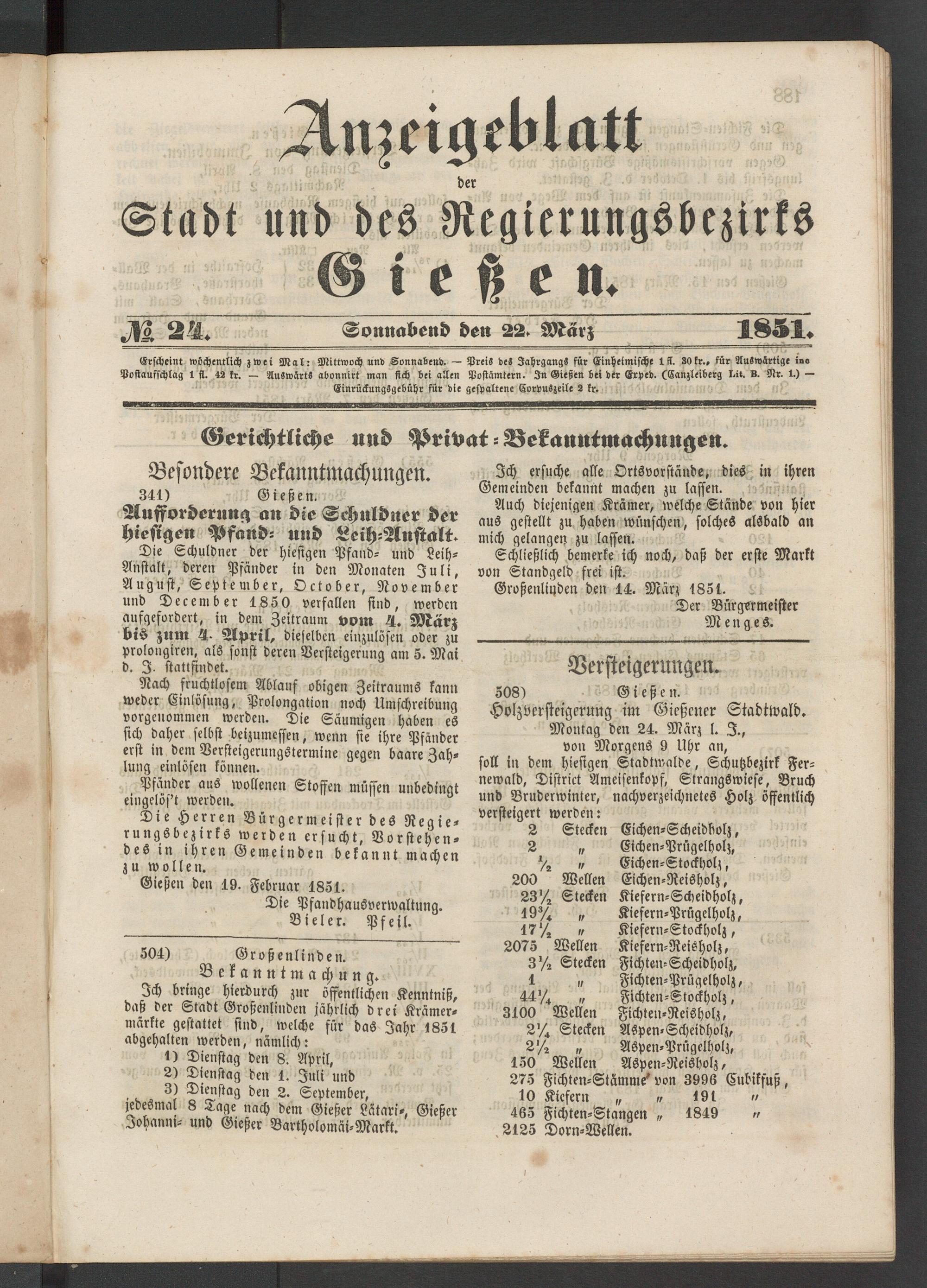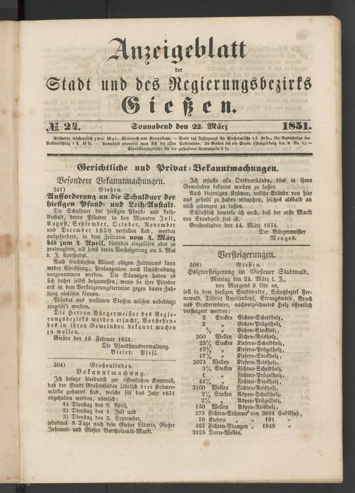 Anzeigeblatt für die Provinzialhauptstadt Gießen. 1840-1867