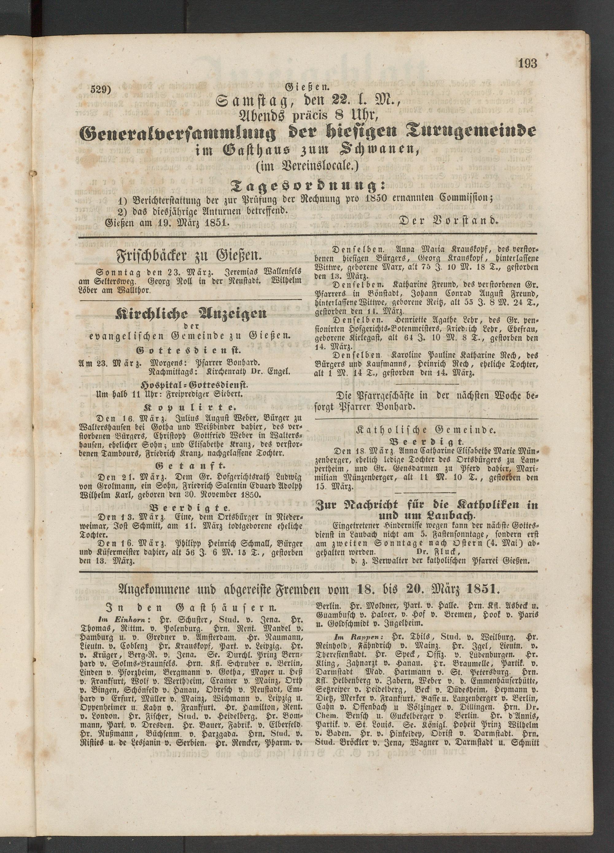 Anzeigeblatt für die Provinzialhauptstadt Gießen. 1840-1867