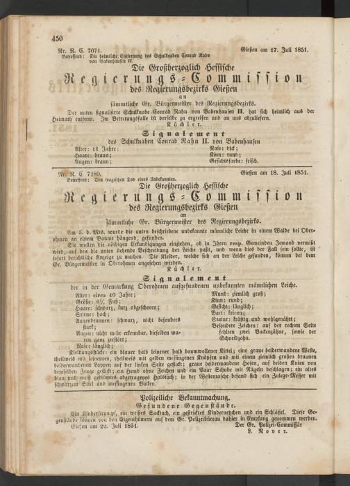 Anzeigeblatt für die Provinzialhauptstadt Gießen. 1840-1867