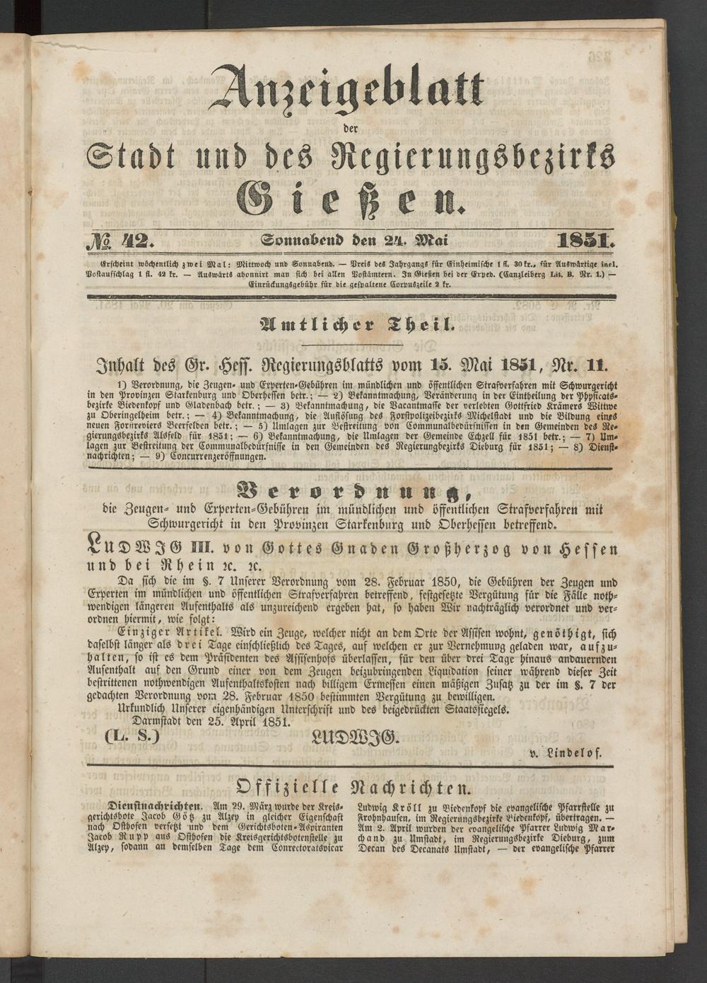 Anzeigeblatt für die Provinzialhauptstadt Gießen. 1840-1867