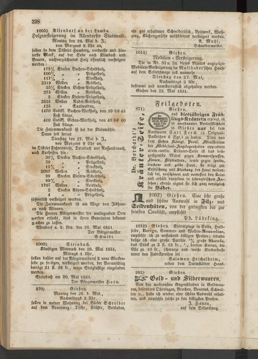 Anzeigeblatt für die Provinzialhauptstadt Gießen. 1840-1867