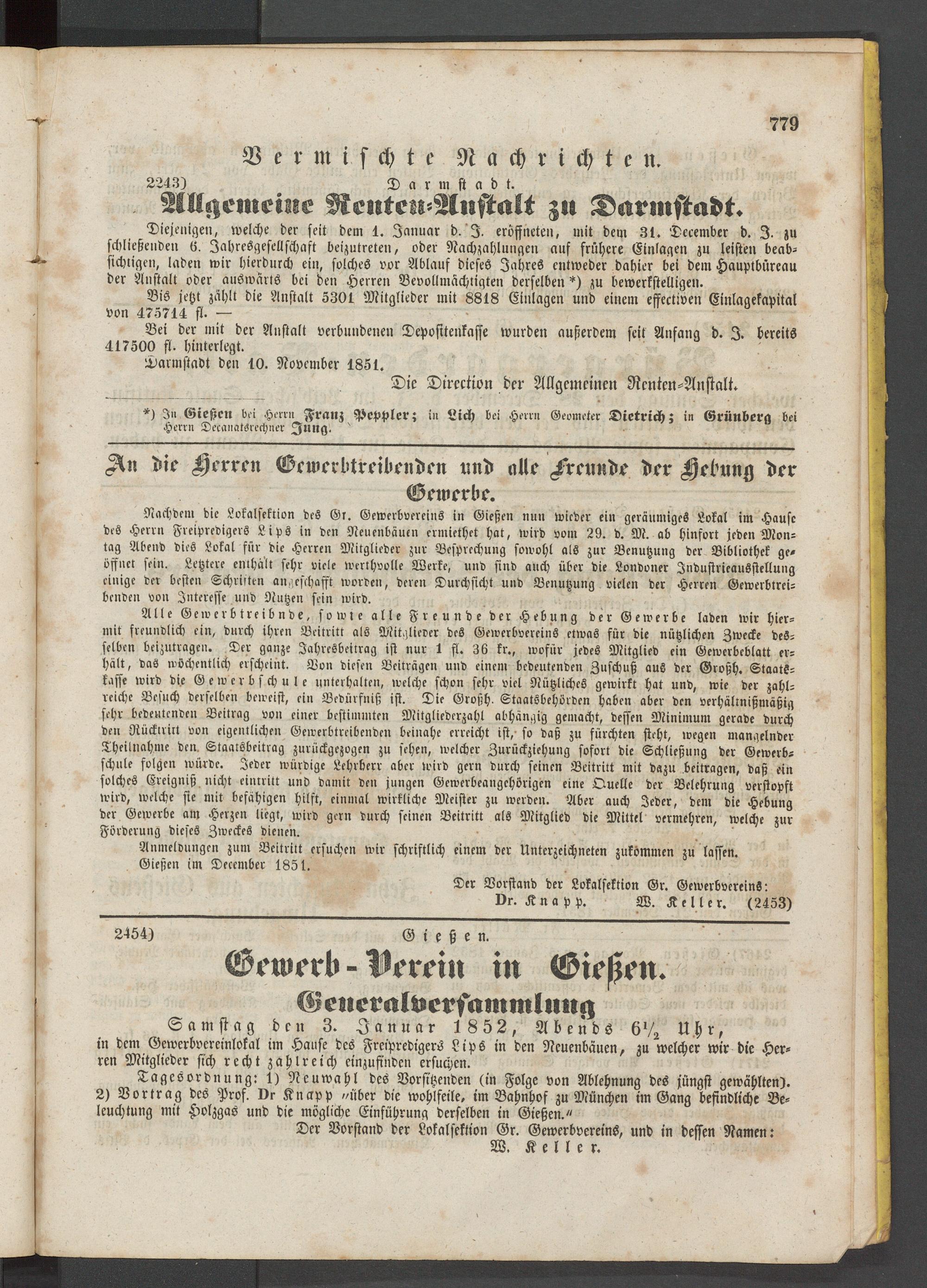 Anzeigeblatt für die Provinzialhauptstadt Gießen. 1840-1867