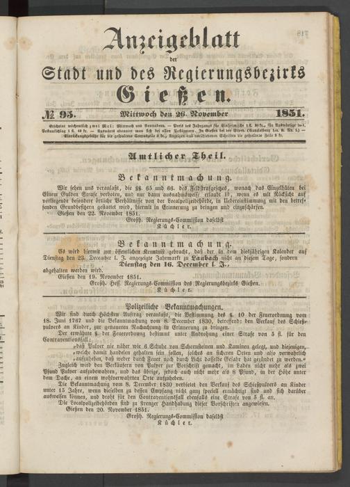 Anzeigeblatt für die Provinzialhauptstadt Gießen. 1840-1867