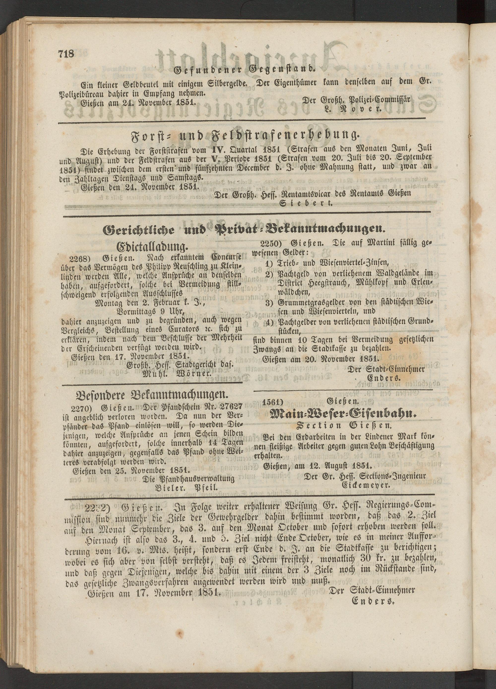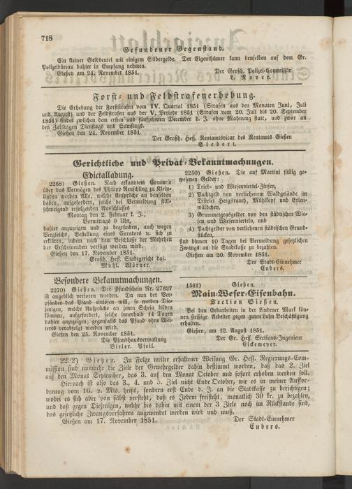 Anzeigeblatt für die Provinzialhauptstadt Gießen. 1840-1867