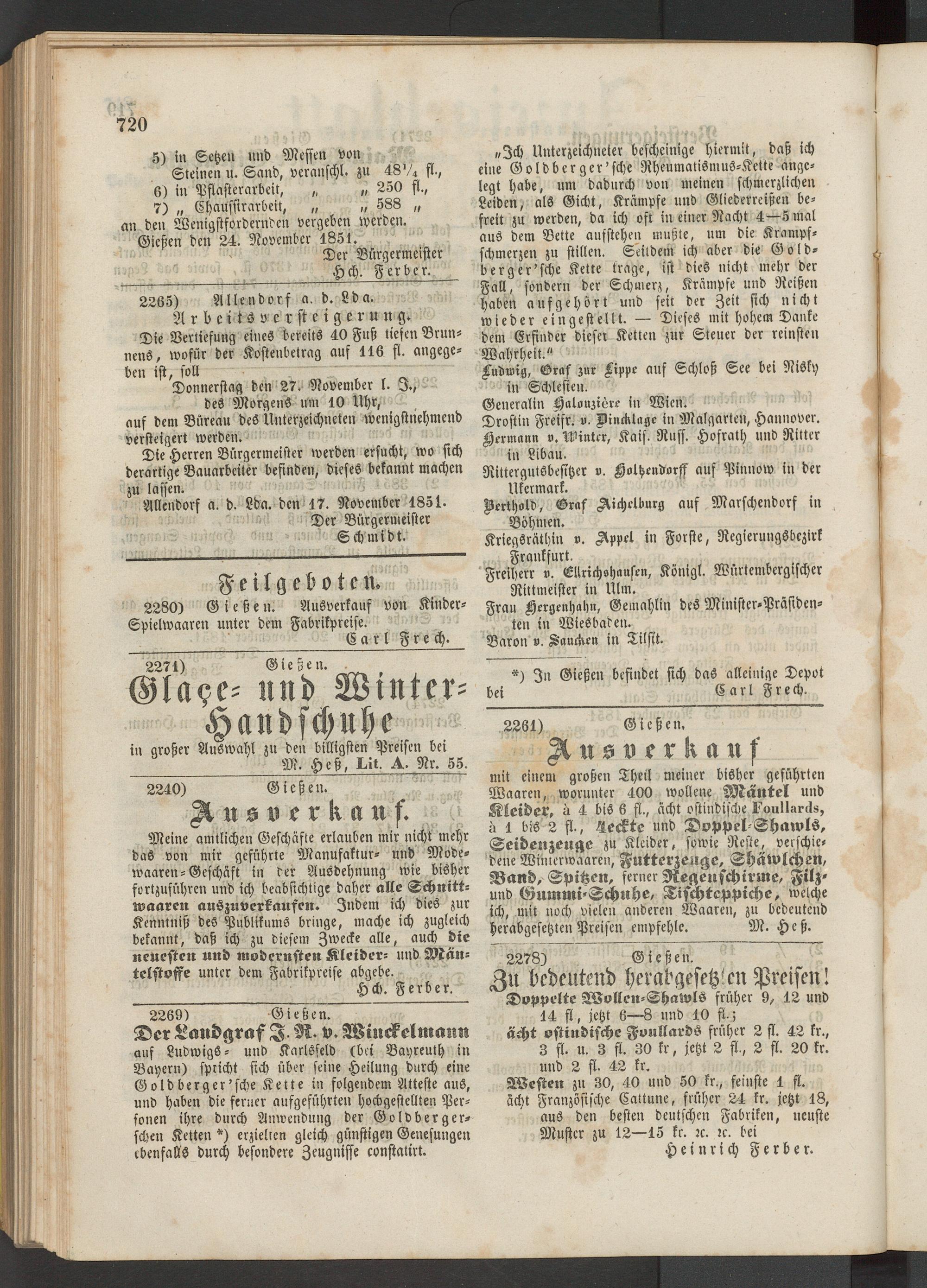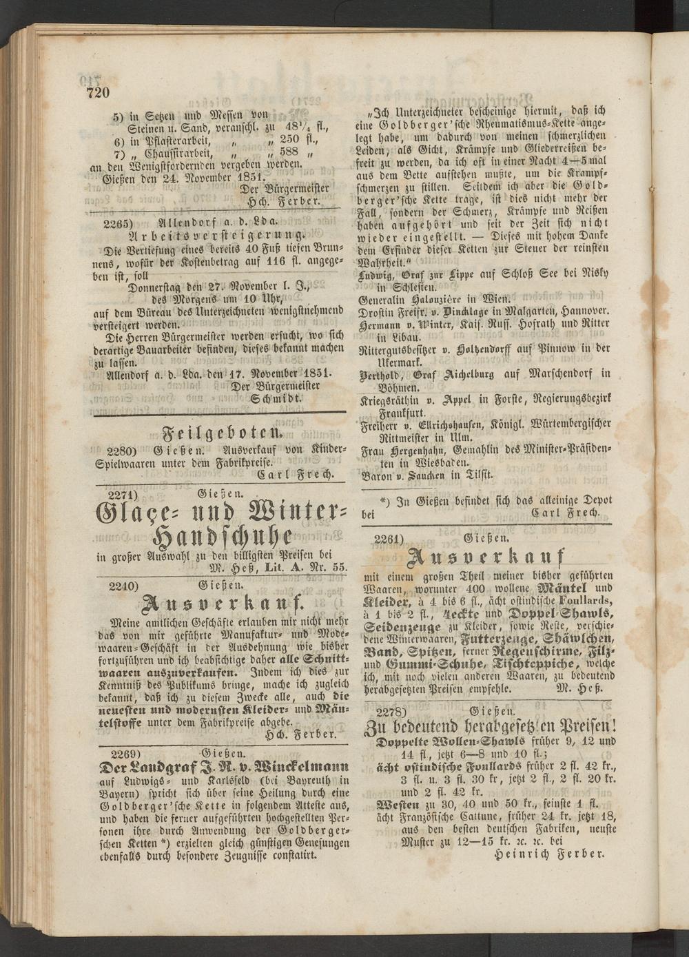 Anzeigeblatt für die Provinzialhauptstadt Gießen. 1840-1867
