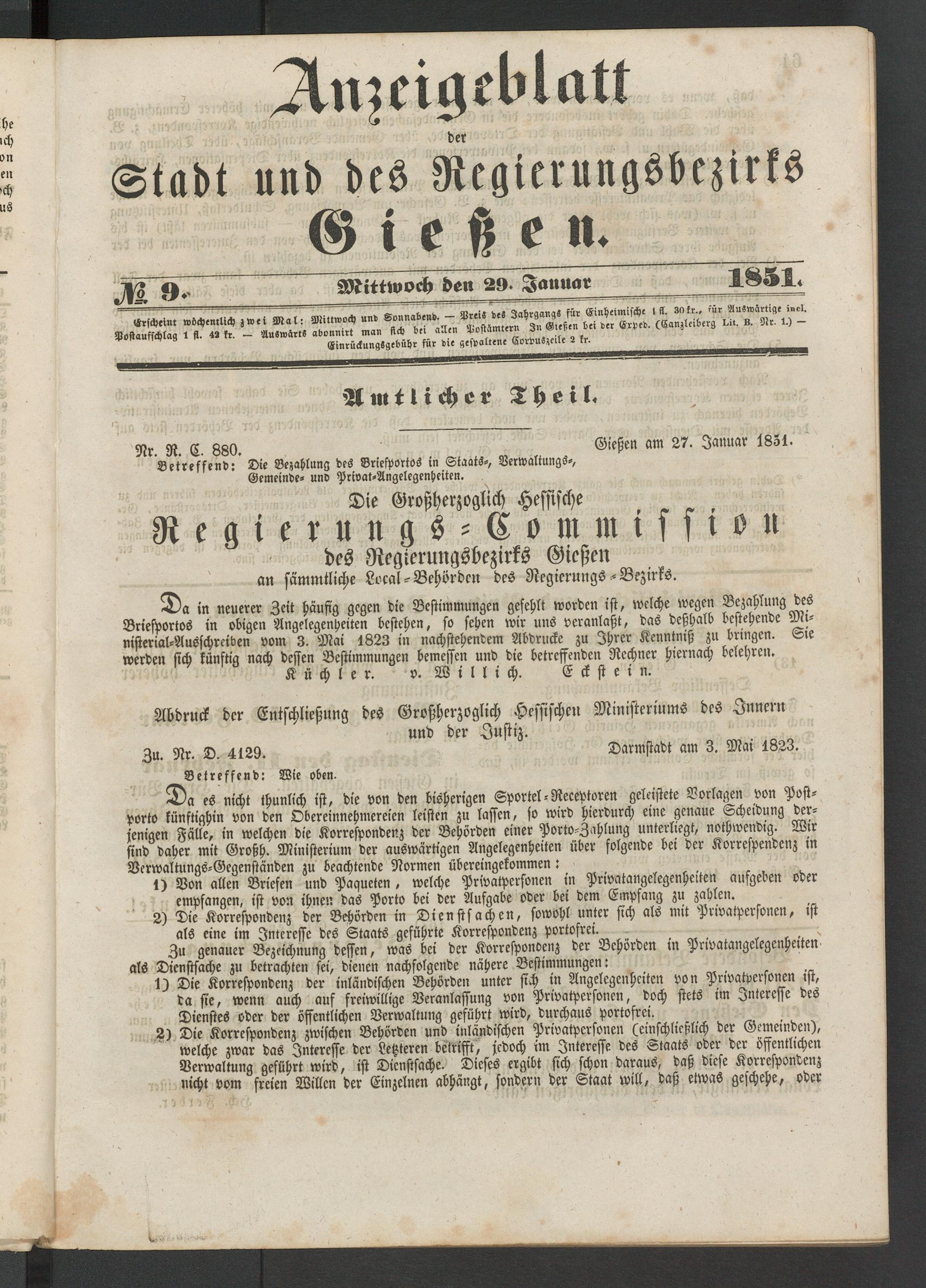 Anzeigeblatt für die Provinzialhauptstadt Gießen. 1840-1867
