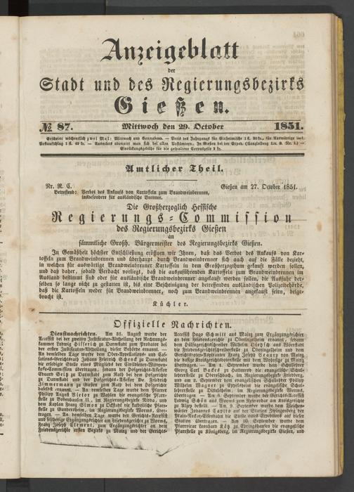 Anzeigeblatt für die Provinzialhauptstadt Gießen. 1840-1867