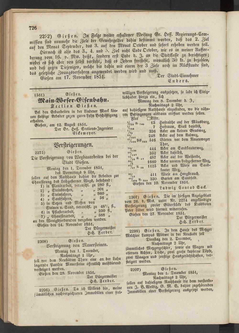 Anzeigeblatt für die Provinzialhauptstadt Gießen. 1840-1867