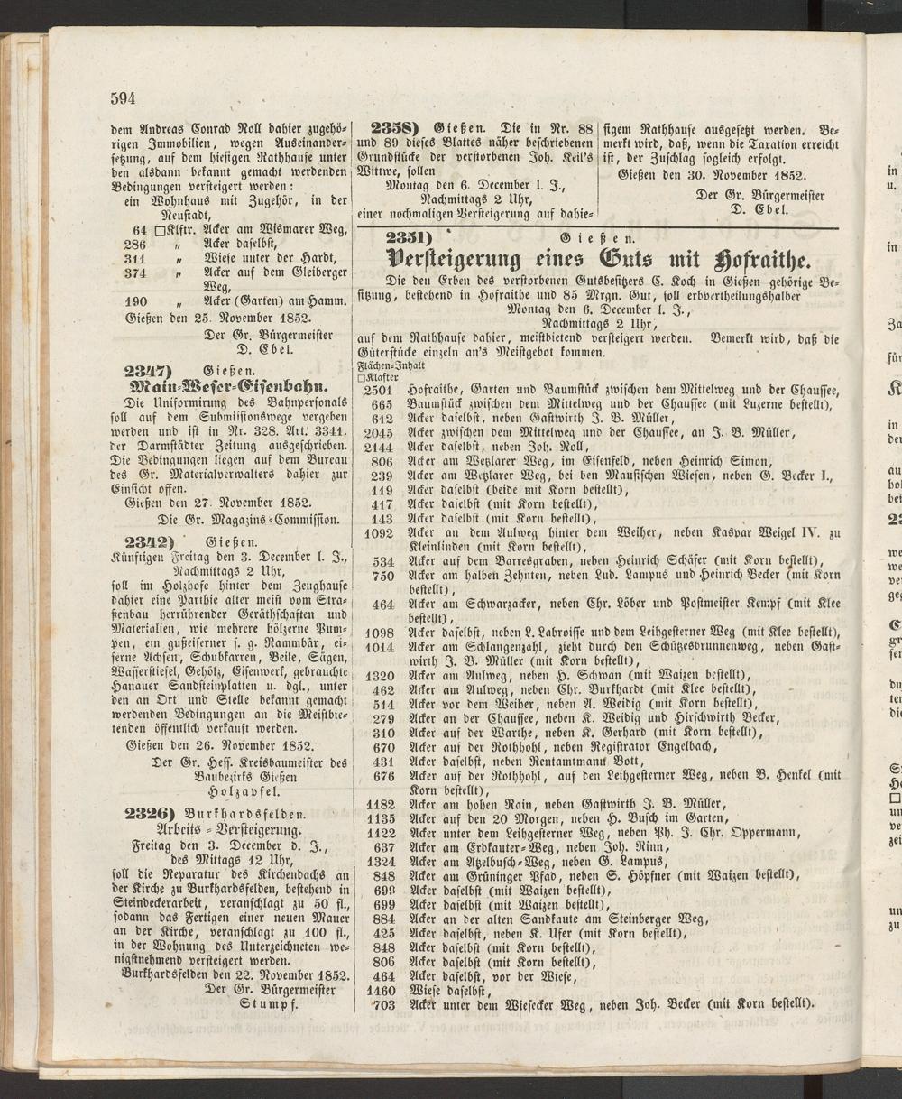 Anzeigeblatt für die Provinzialhauptstadt Gießen. 1840-1867
