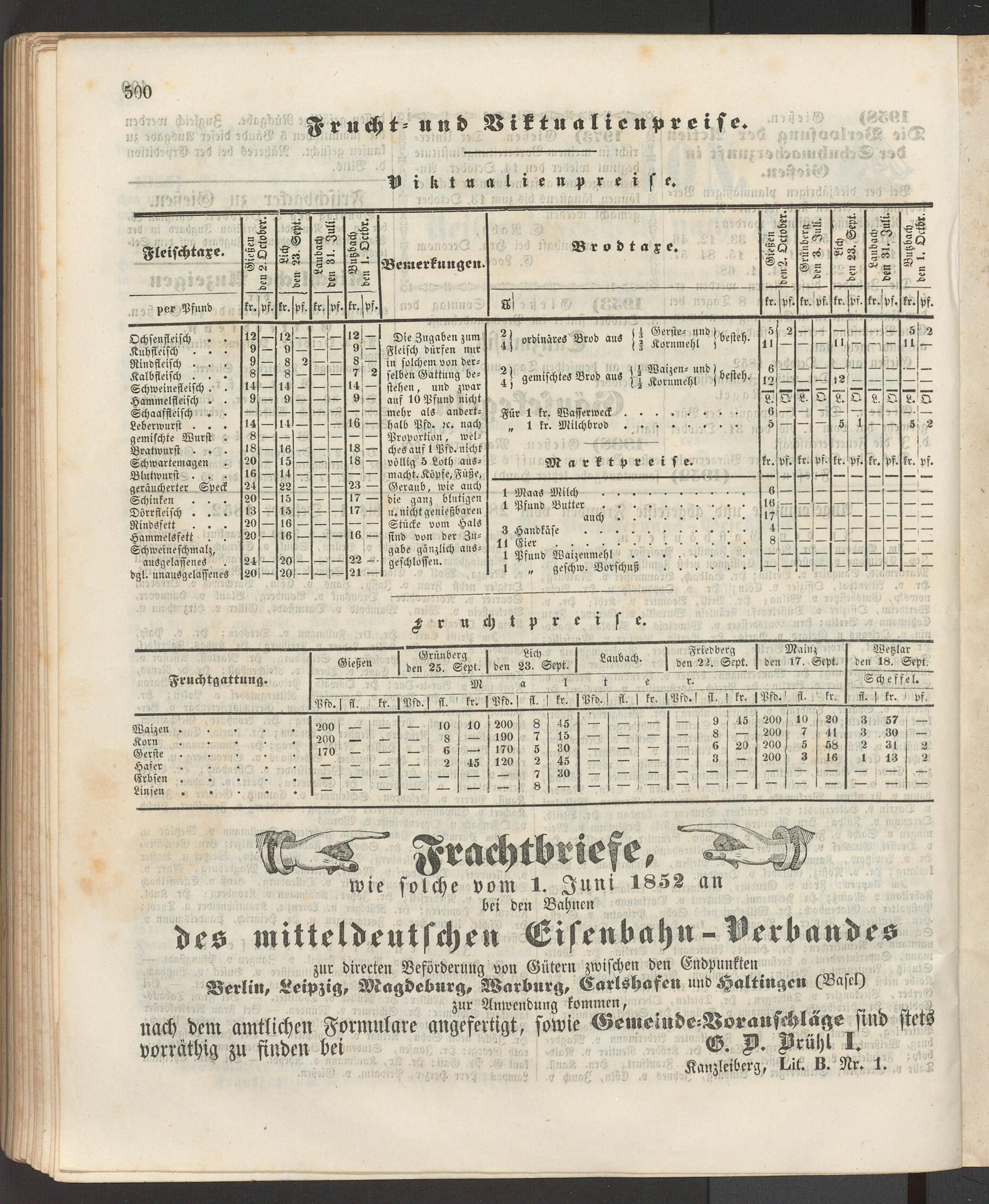 Anzeigeblatt für die Provinzialhauptstadt Gießen. 1840-1867