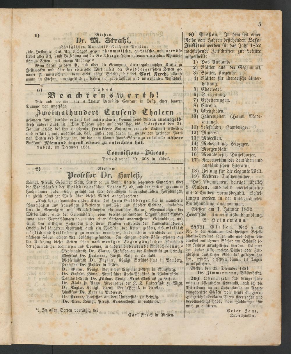 Anzeigeblatt für die Provinzialhauptstadt Gießen. 1840-1867
