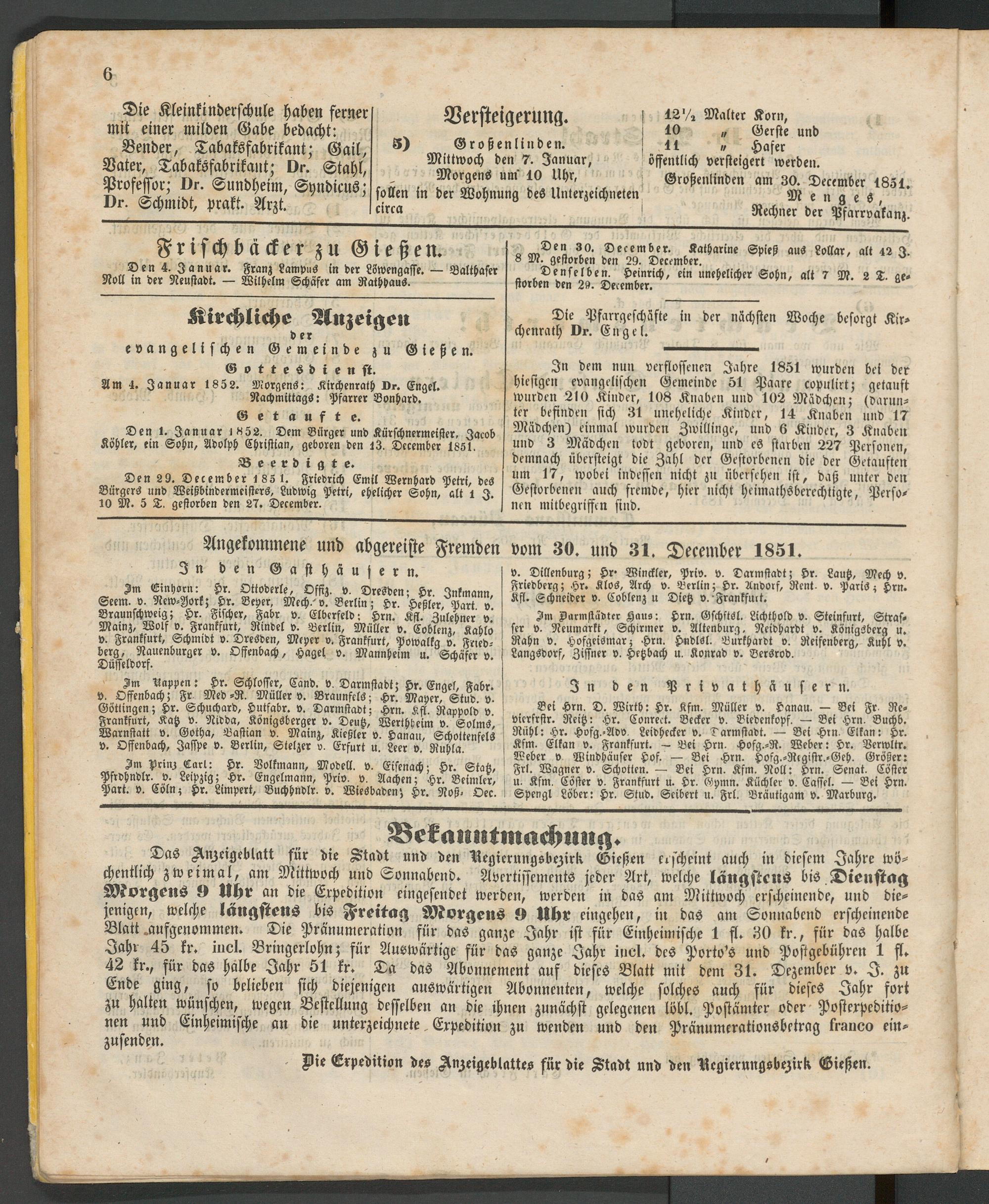 Anzeigeblatt für die Provinzialhauptstadt Gießen. 1840-1867