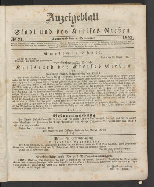 Anzeigeblatt für die Provinzialhauptstadt Gießen. 1840-1867