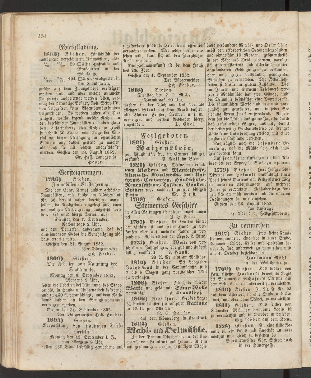 Anzeigeblatt für die Provinzialhauptstadt Gießen. 1840-1867