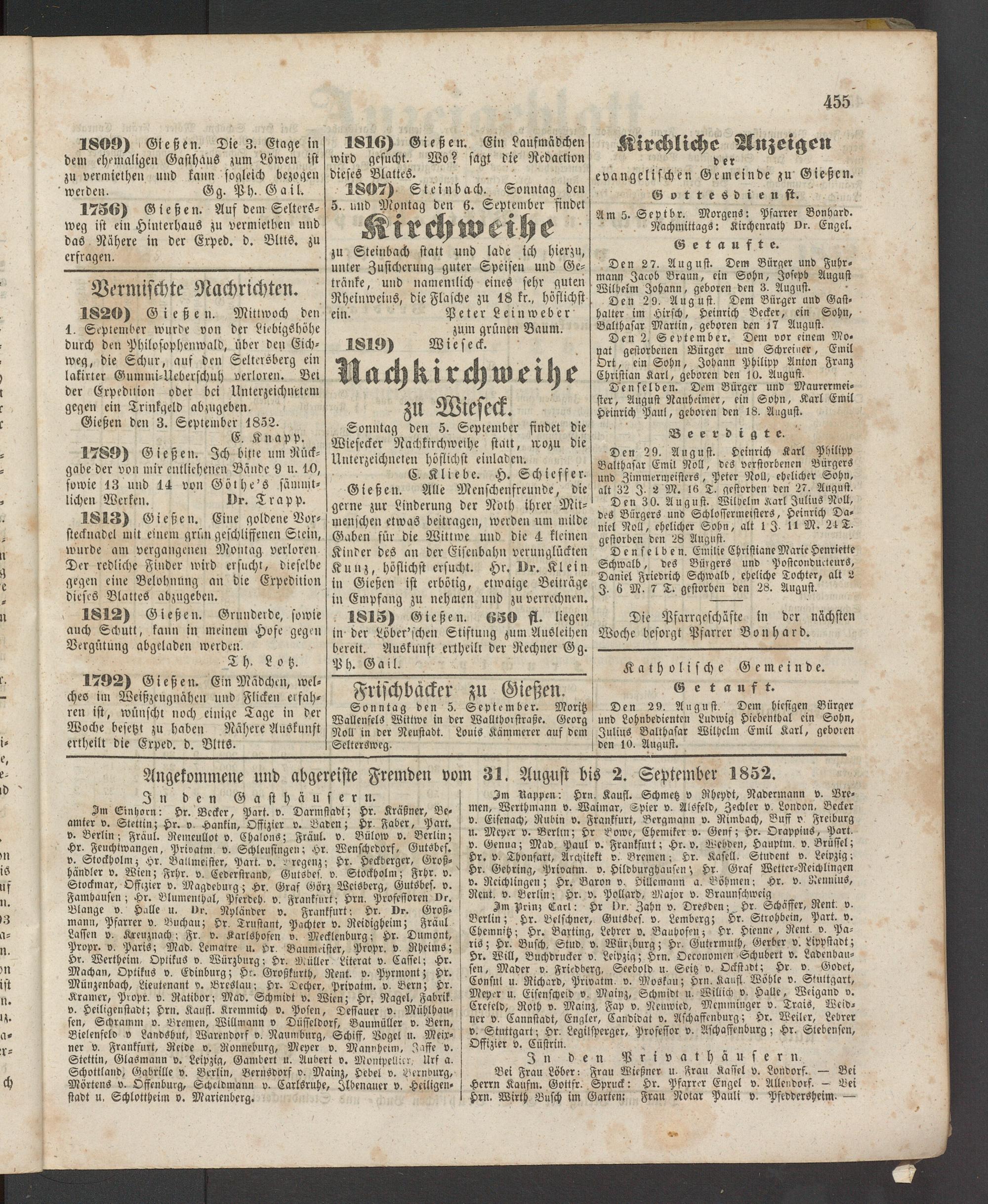 Anzeigeblatt für die Provinzialhauptstadt Gießen. 1840-1867