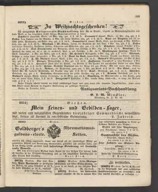 Anzeigeblatt für die Provinzialhauptstadt Gießen. 1840-1867