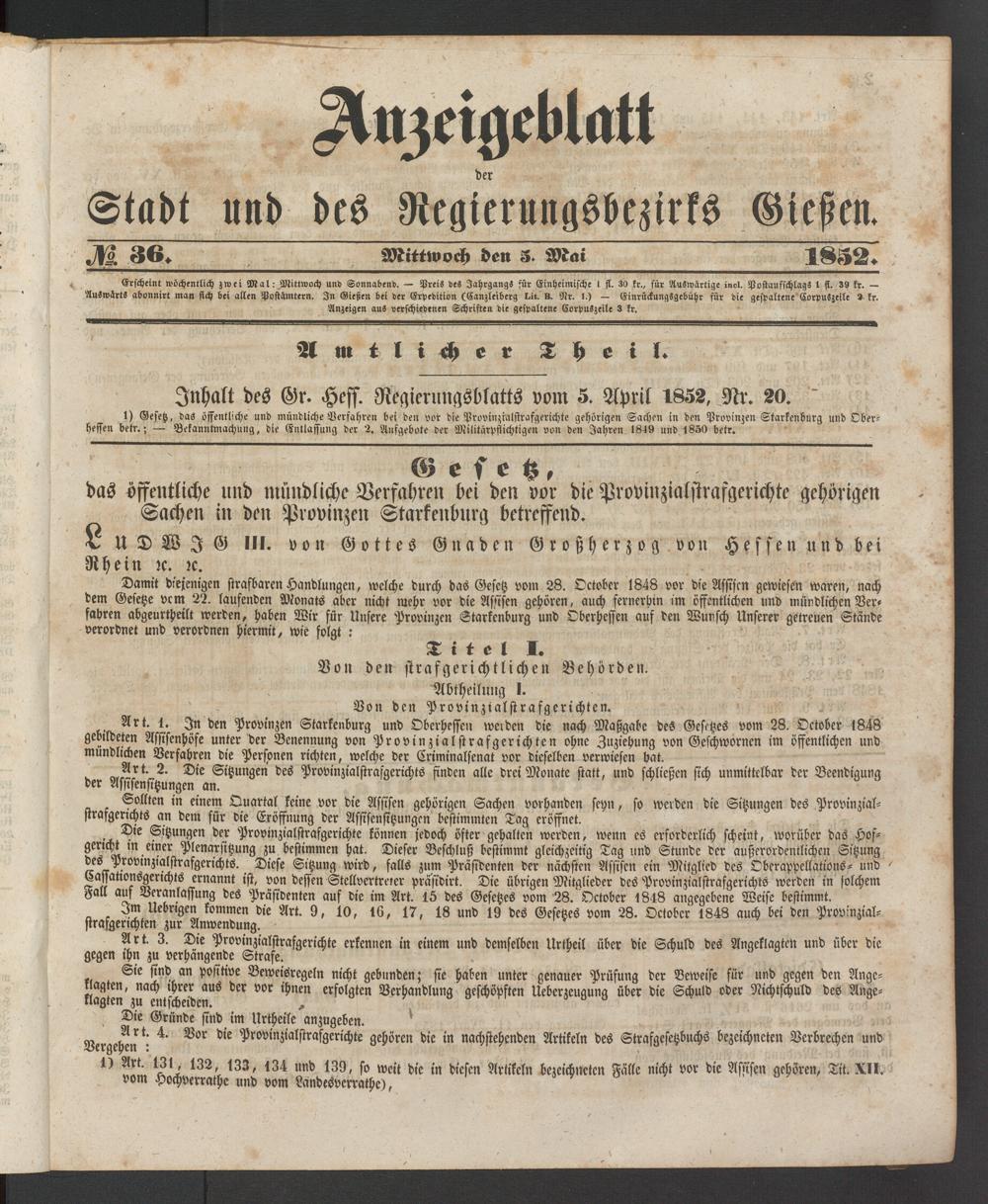 Anzeigeblatt für die Provinzialhauptstadt Gießen. 1840-1867
