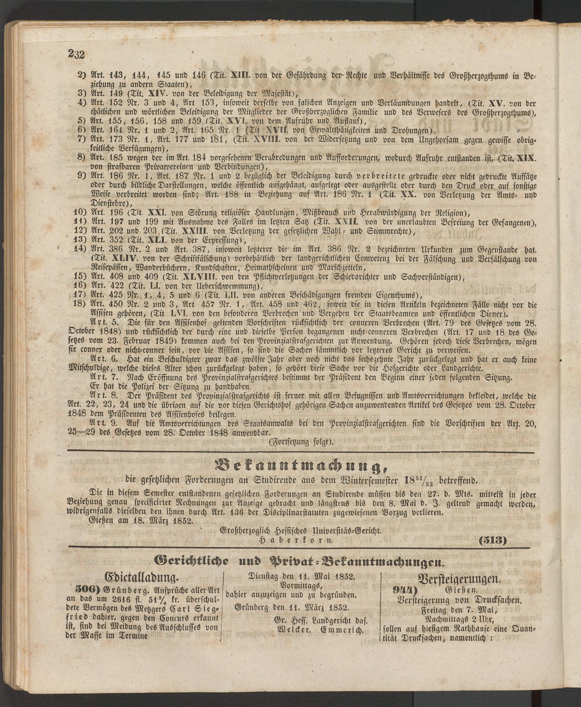 Anzeigeblatt für die Provinzialhauptstadt Gießen. 1840-1867