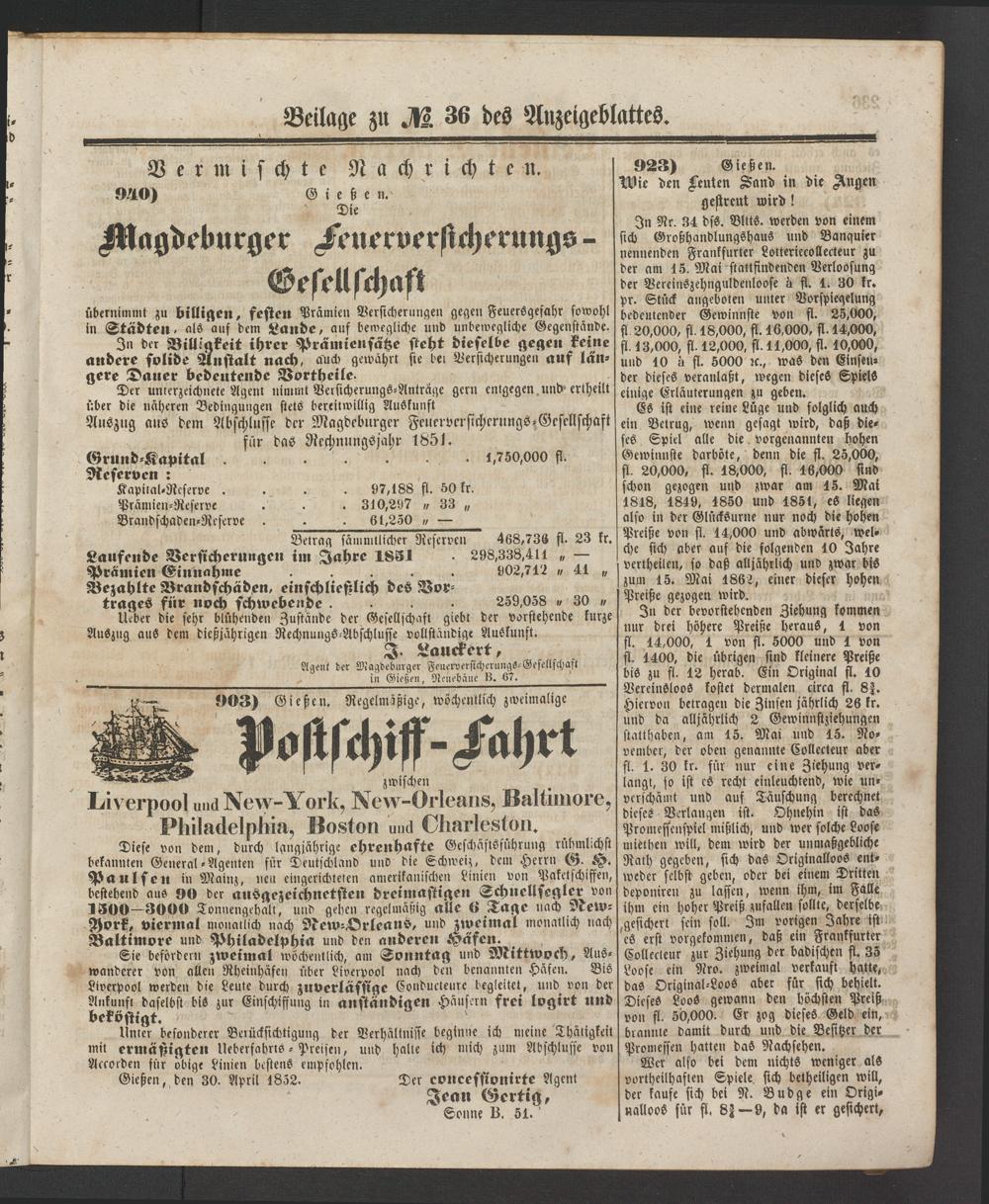 Anzeigeblatt für die Provinzialhauptstadt Gießen. 1840-1867