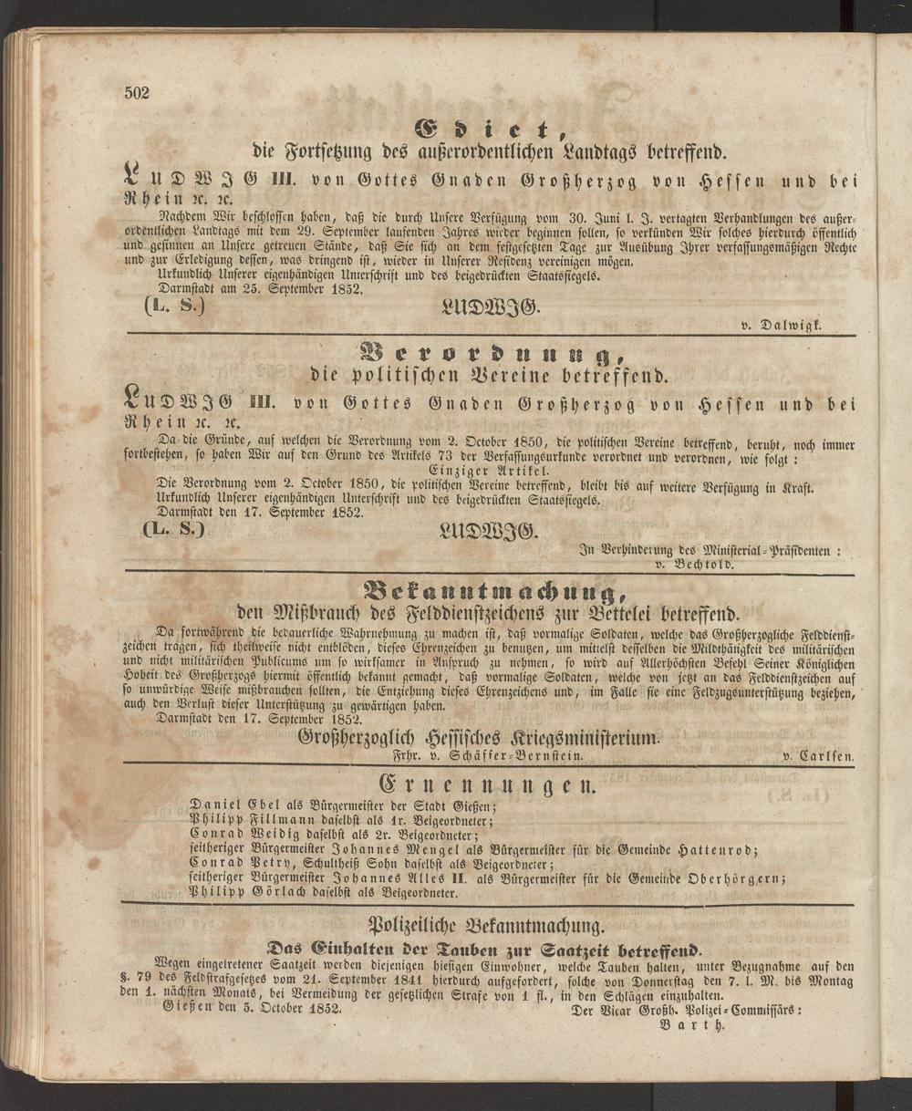 Anzeigeblatt für die Provinzialhauptstadt Gießen. 1840-1867