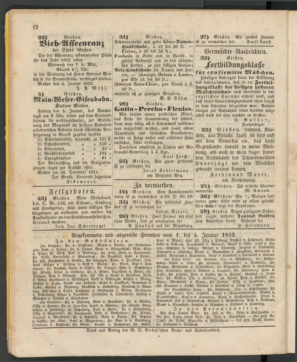 Anzeigeblatt für die Provinzialhauptstadt Gießen. 1840-1867