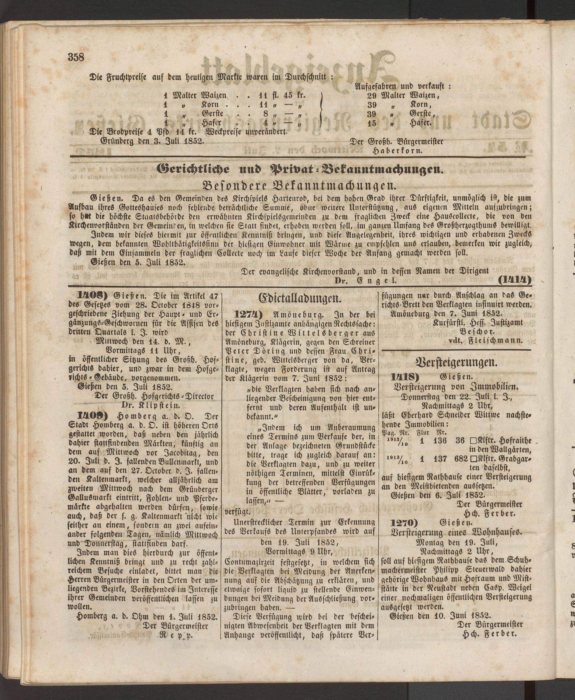 Anzeigeblatt für die Provinzialhauptstadt Gießen. 1840-1867