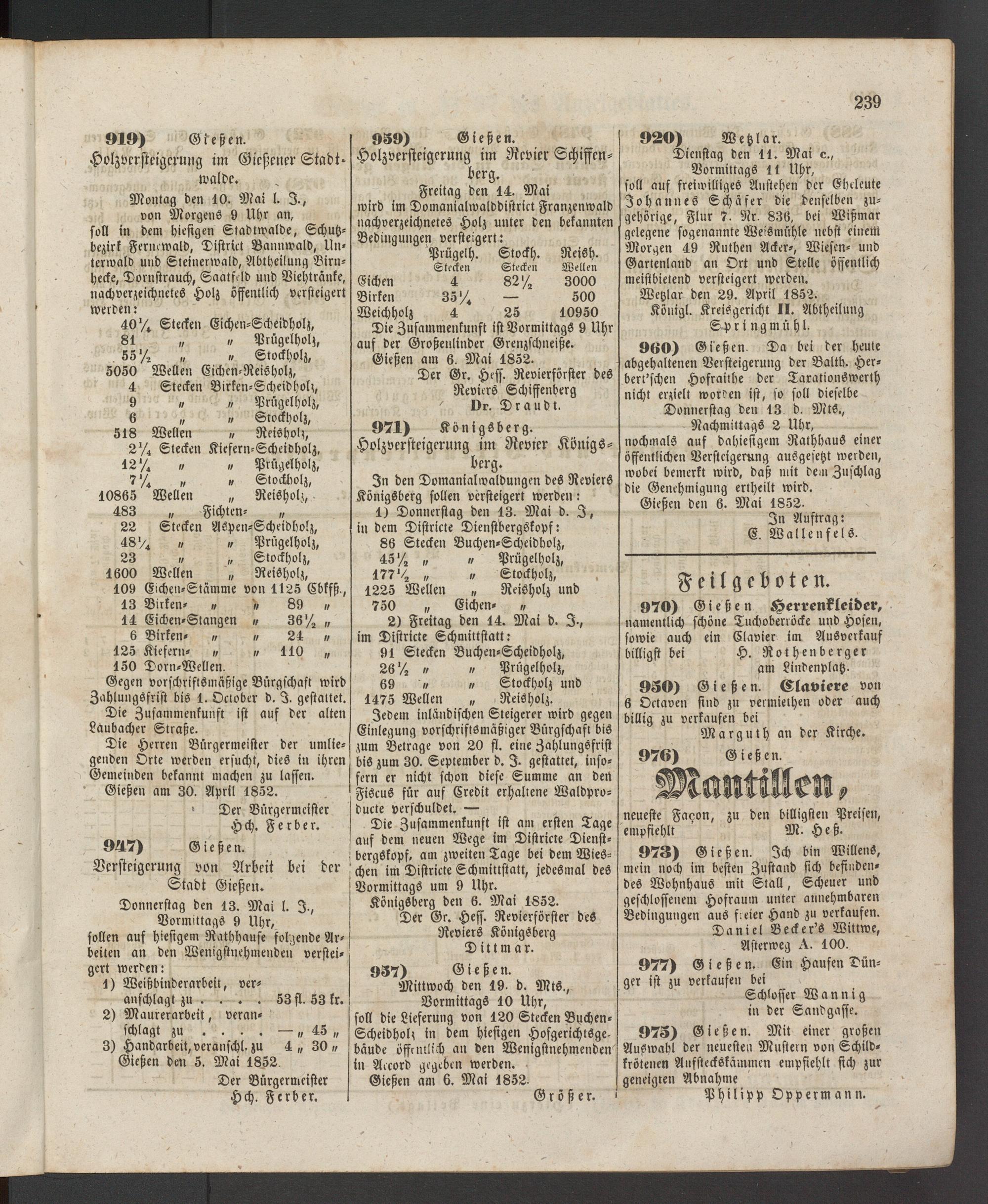 Anzeigeblatt für die Provinzialhauptstadt Gießen. 1840-1867