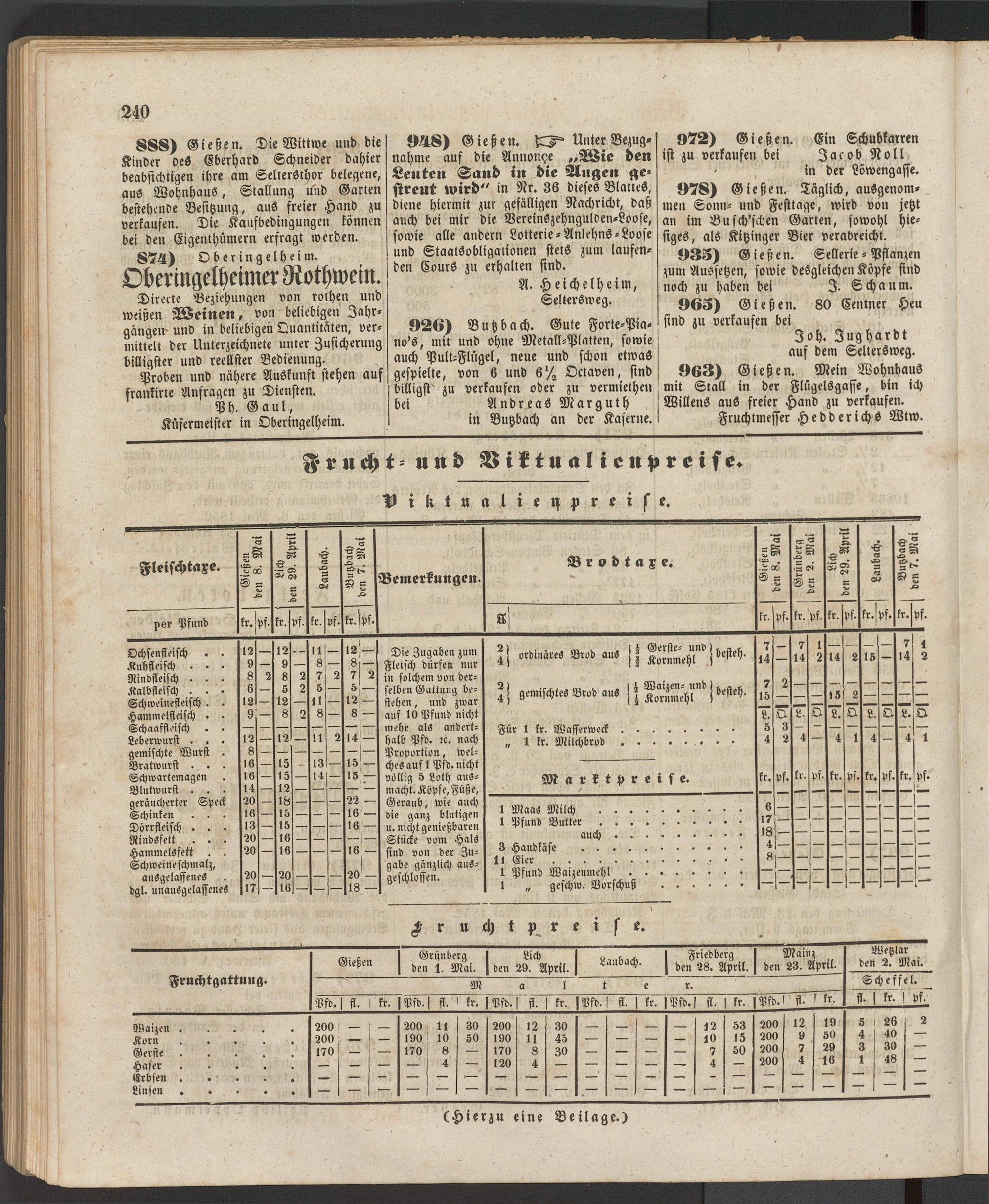 Anzeigeblatt für die Provinzialhauptstadt Gießen. 1840-1867