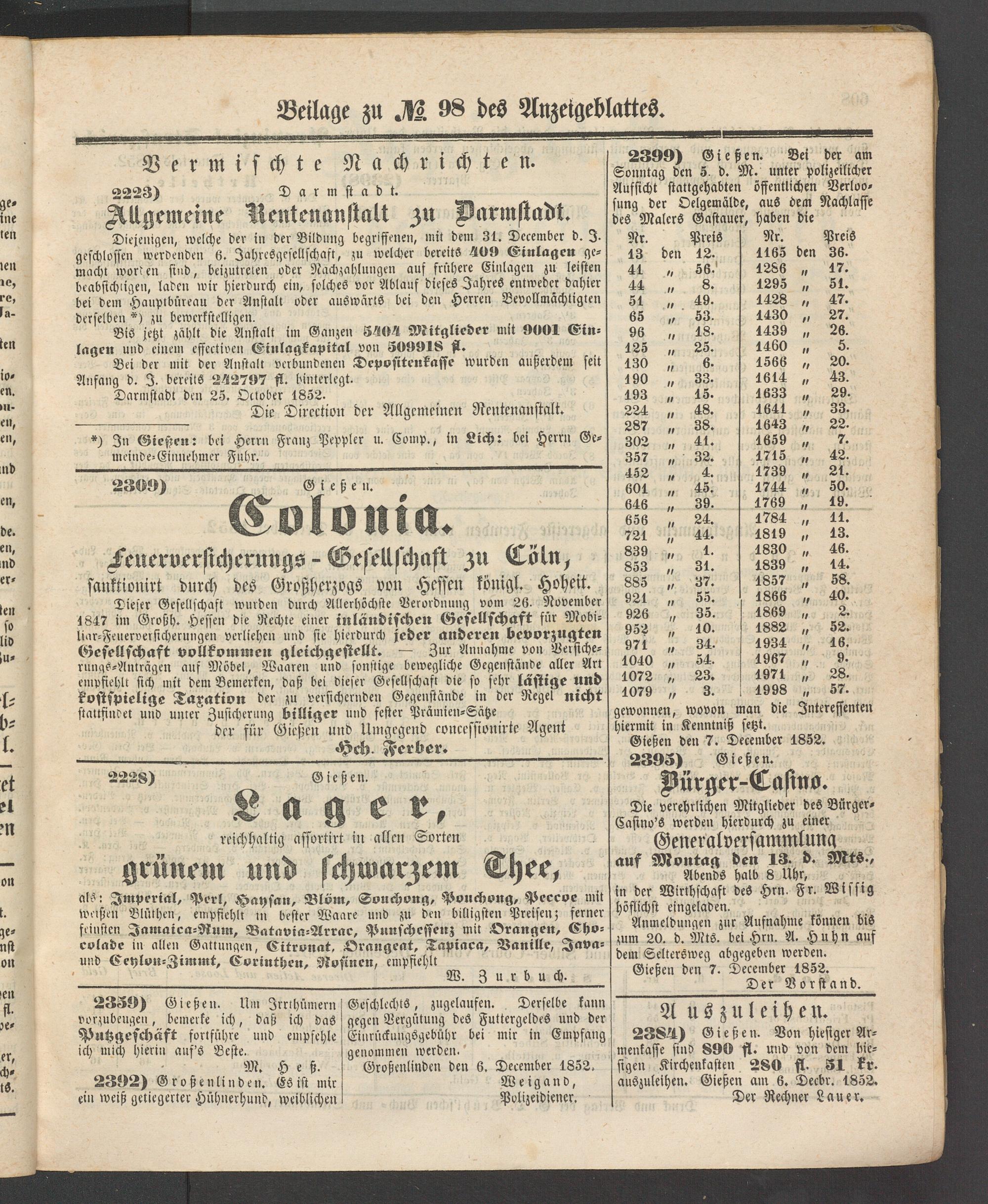 Anzeigeblatt für die Provinzialhauptstadt Gießen. 1840-1867