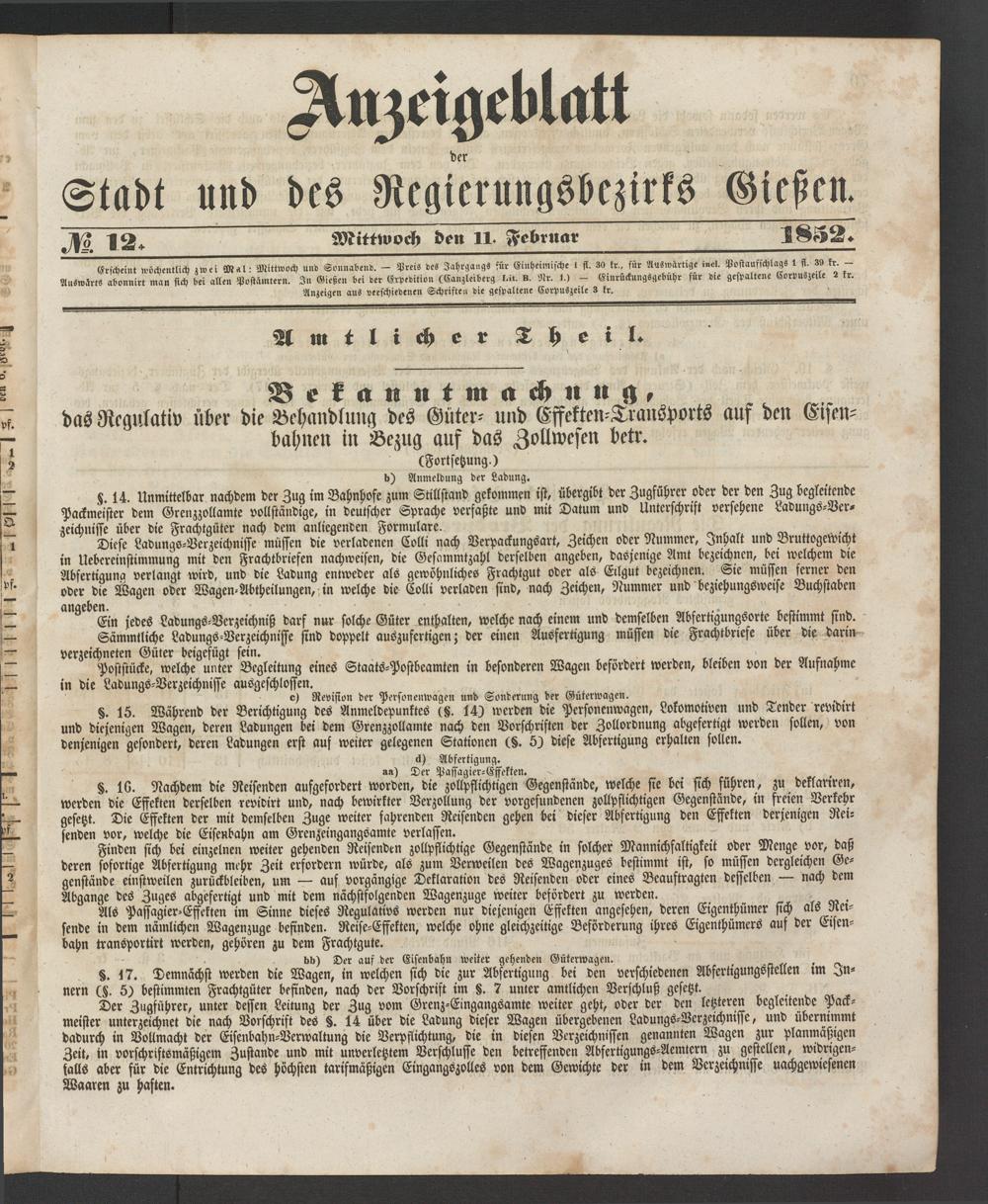 Anzeigeblatt für die Provinzialhauptstadt Gießen. 1840-1867