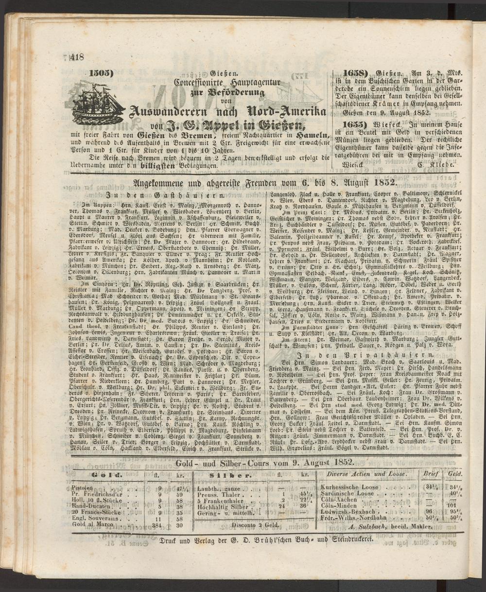 Anzeigeblatt für die Provinzialhauptstadt Gießen. 1840-1867