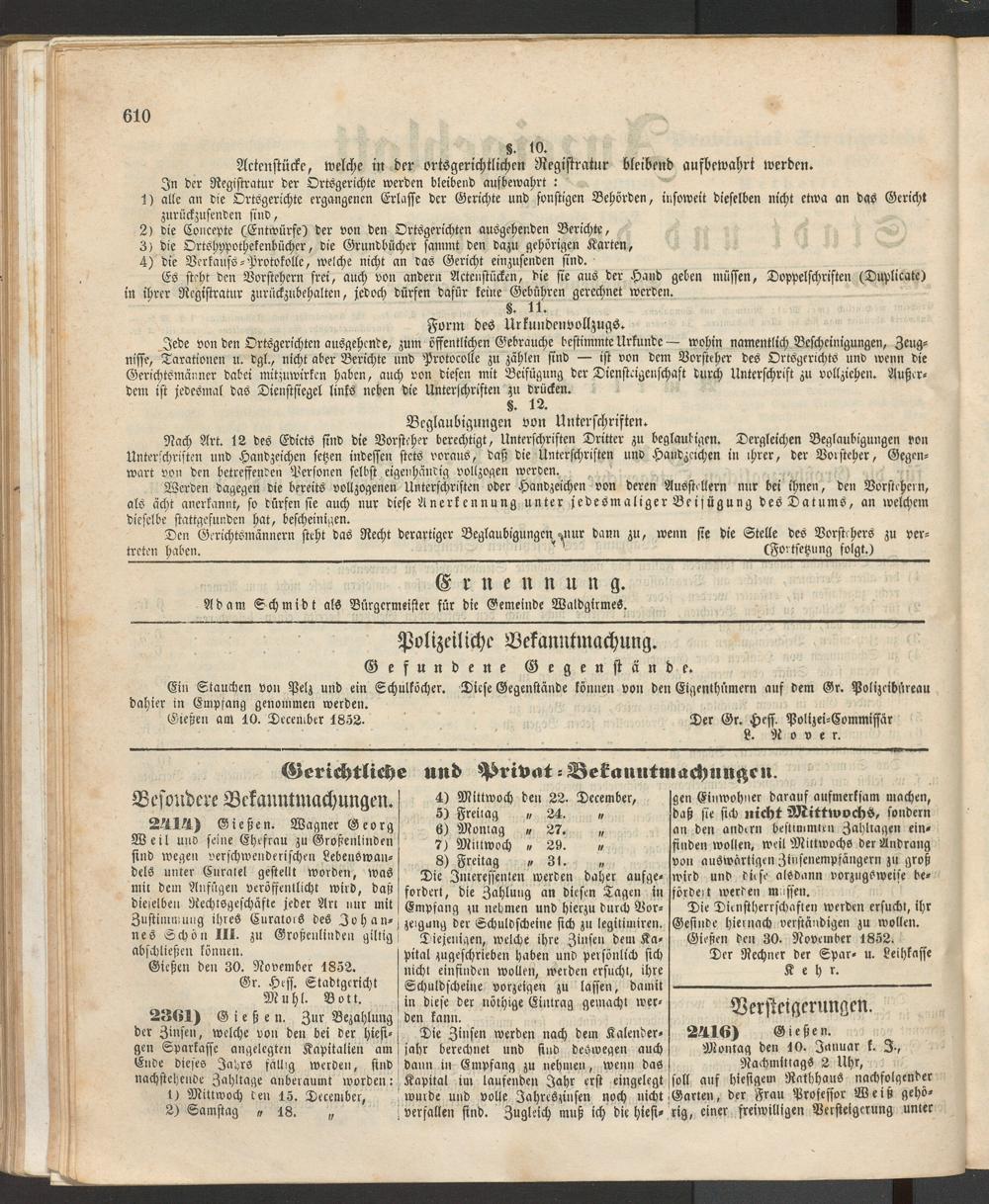 Anzeigeblatt für die Provinzialhauptstadt Gießen. 1840-1867