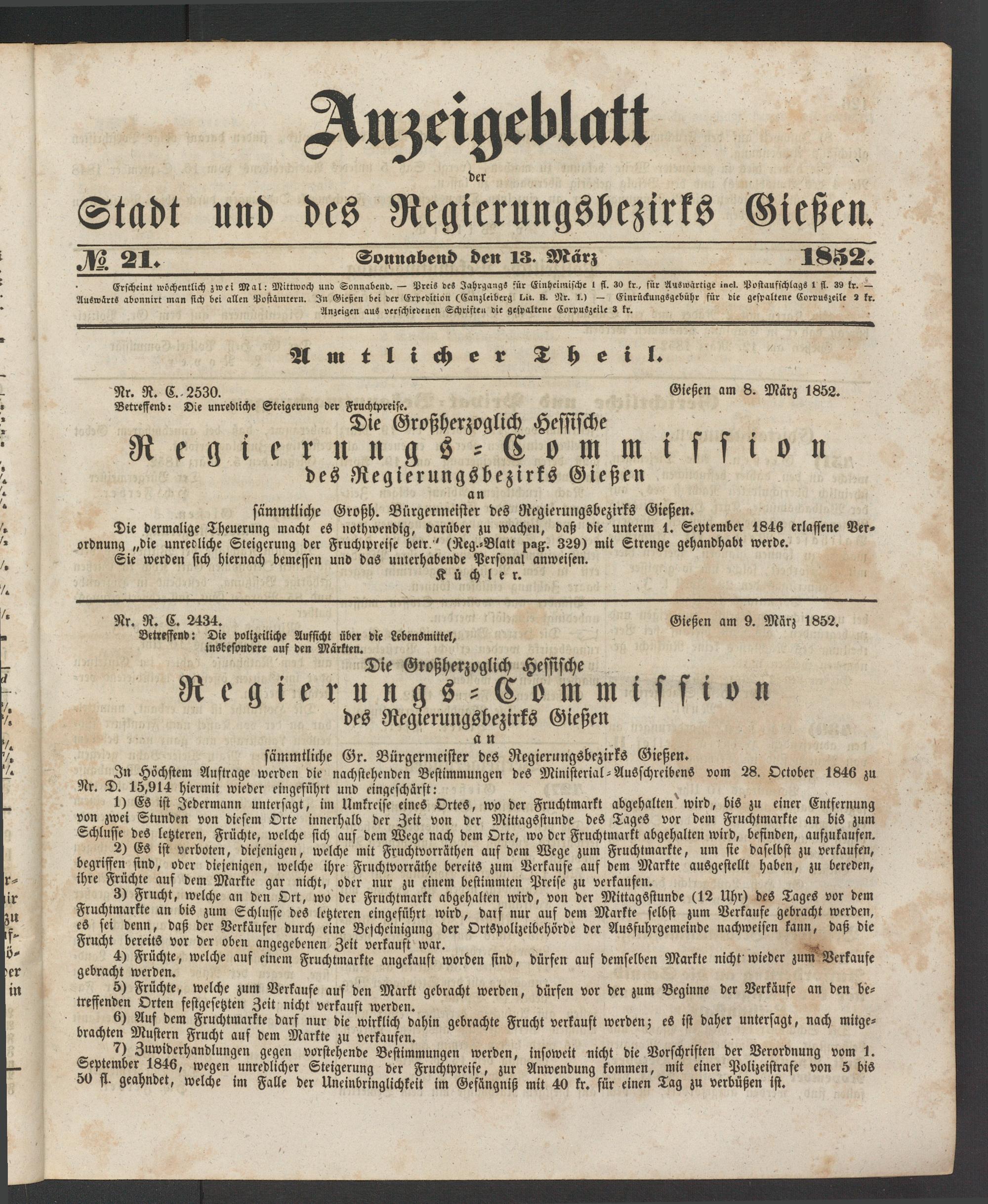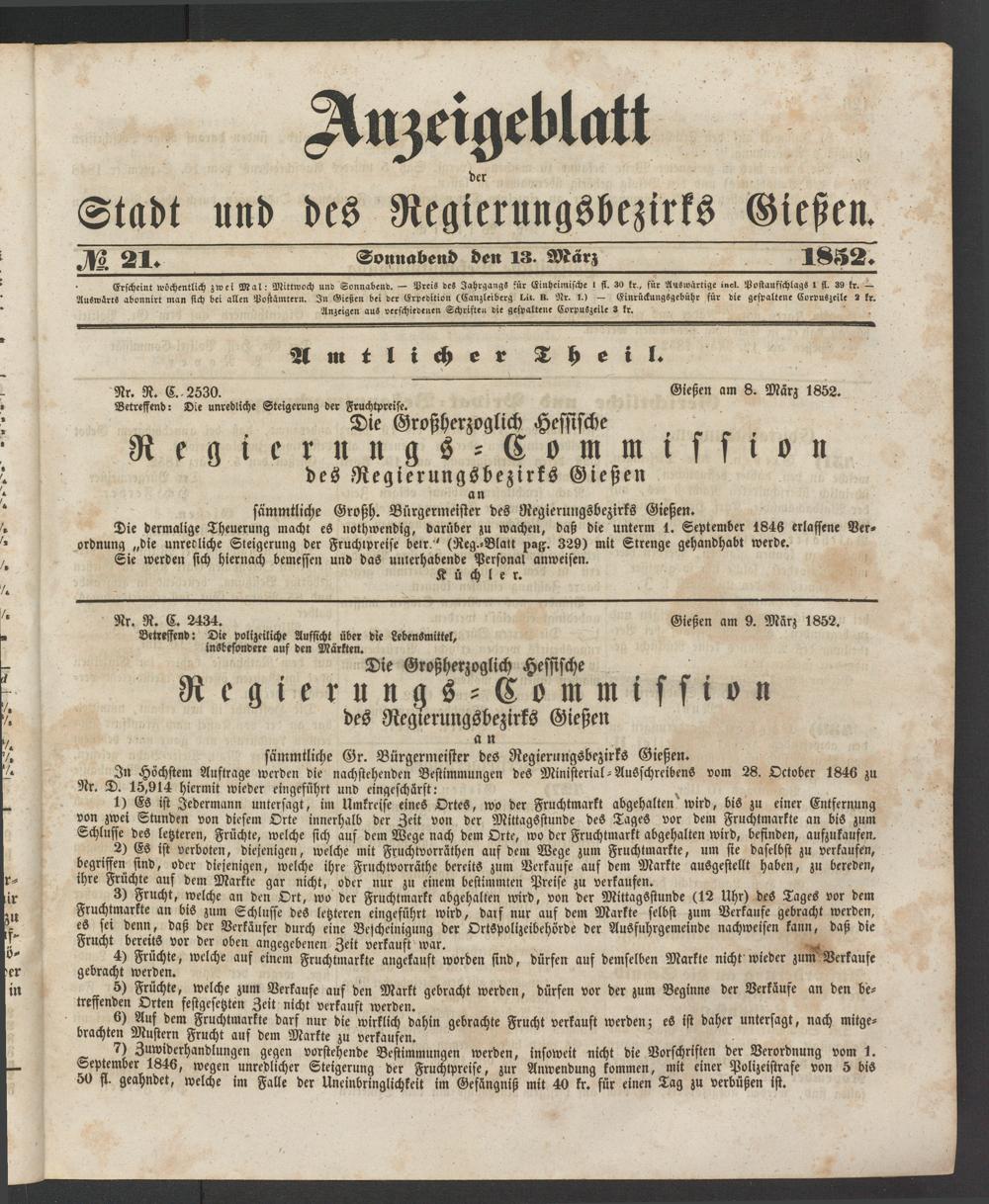 Anzeigeblatt für die Provinzialhauptstadt Gießen. 1840-1867