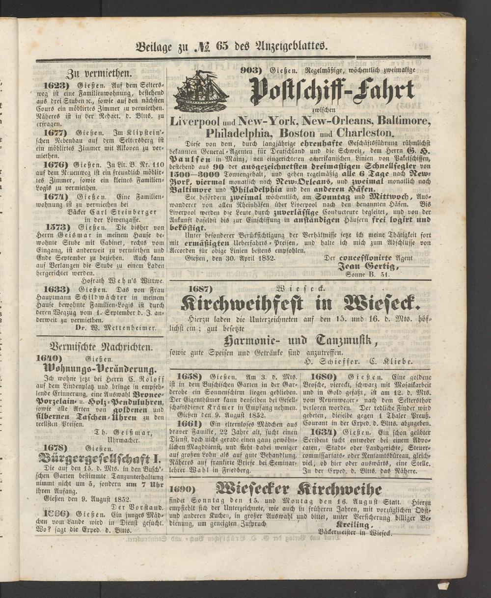 Anzeigeblatt für die Provinzialhauptstadt Gießen. 1840-1867