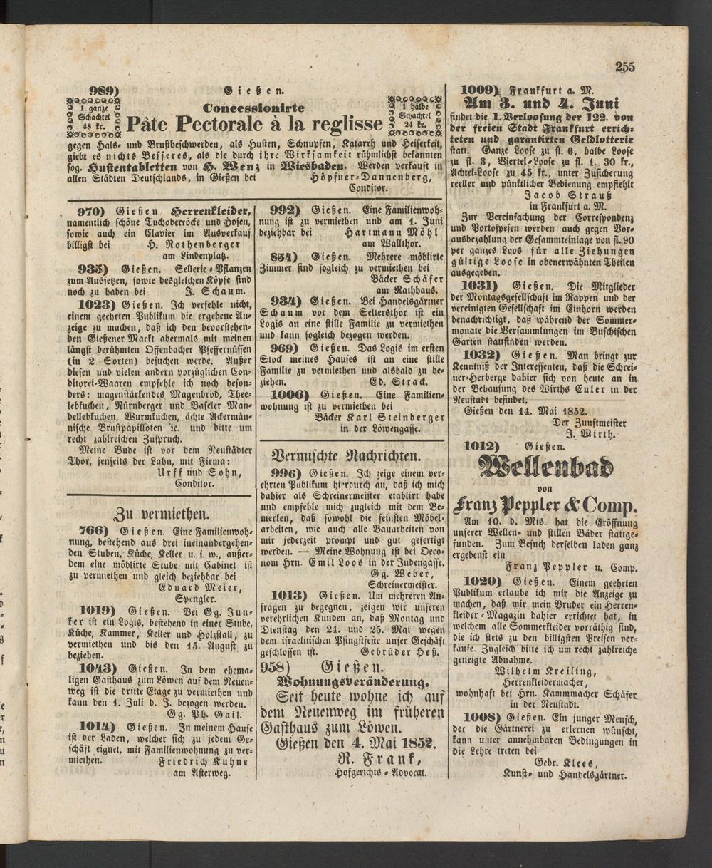Anzeigeblatt für die Provinzialhauptstadt Gießen. 1840-1867
