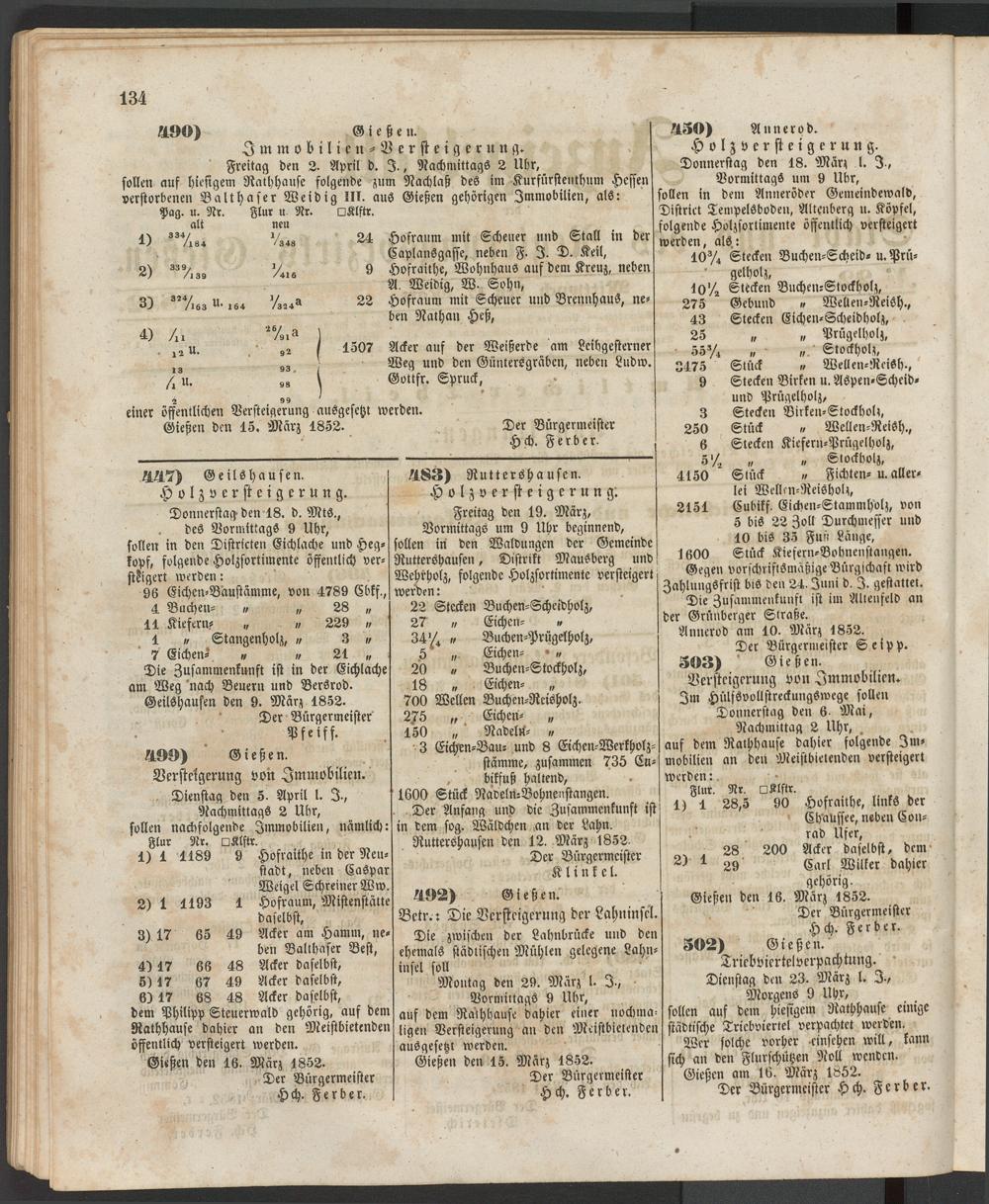 Anzeigeblatt für die Provinzialhauptstadt Gießen. 1840-1867
