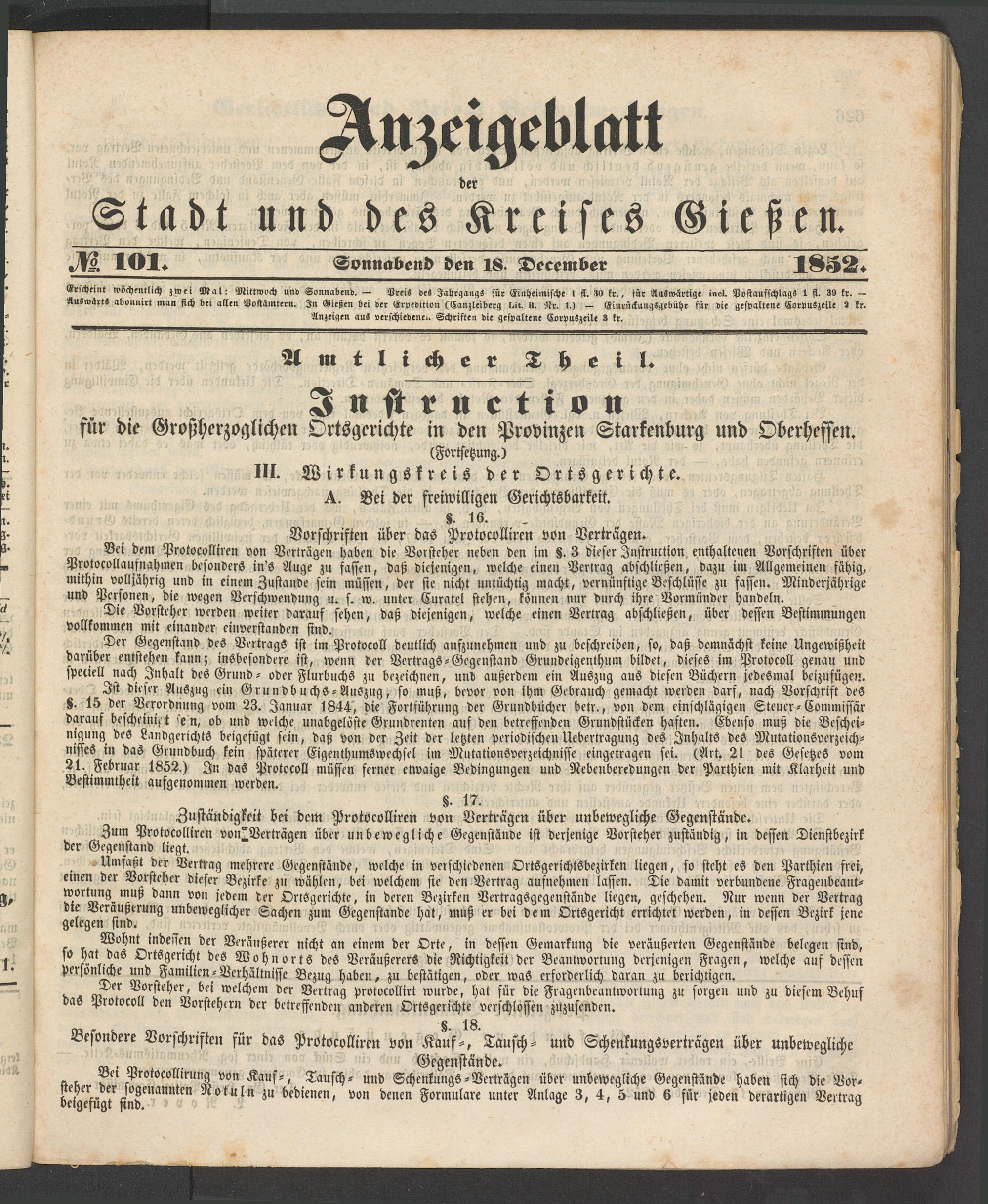 Anzeigeblatt für die Provinzialhauptstadt Gießen. 1840-1867
