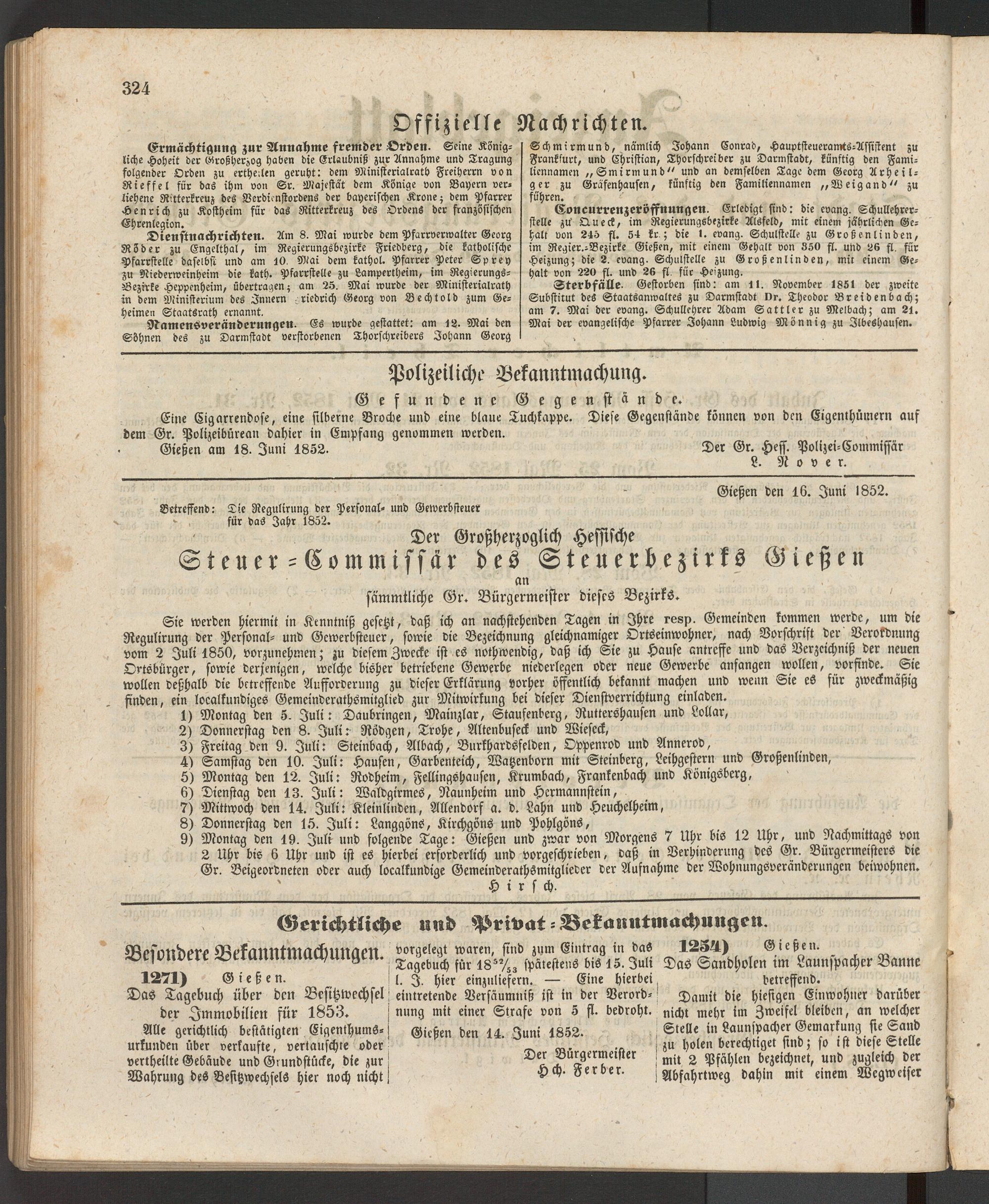 Anzeigeblatt für die Provinzialhauptstadt Gießen. 1840-1867