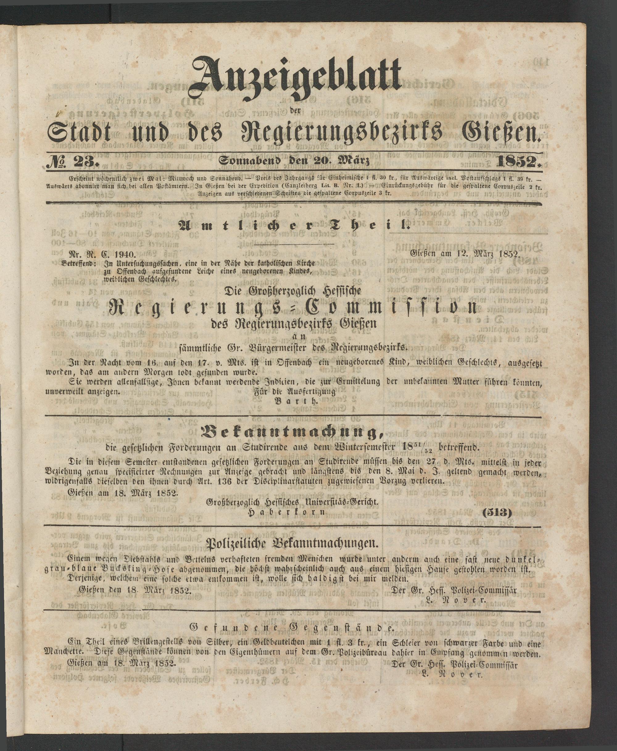 Anzeigeblatt für die Provinzialhauptstadt Gießen. 1840-1867