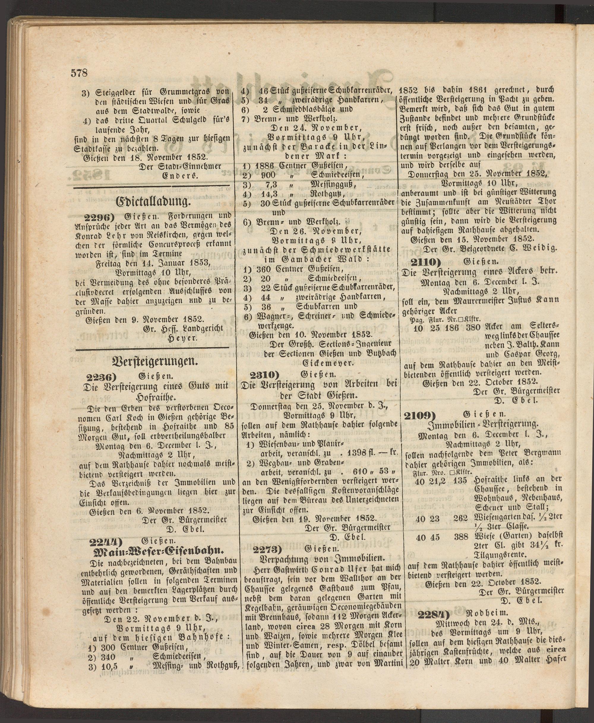Anzeigeblatt für die Provinzialhauptstadt Gießen. 1840-1867