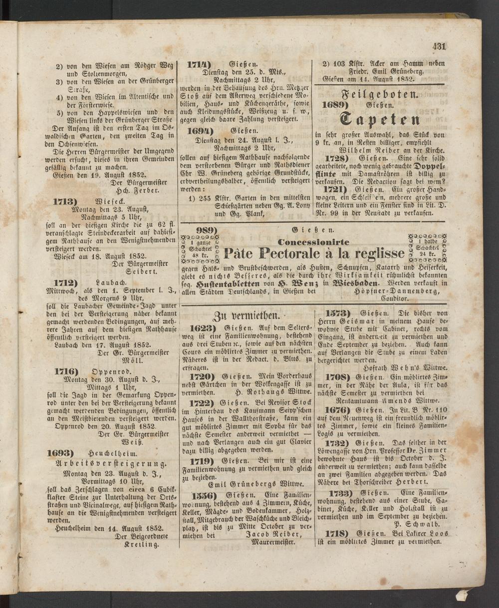 Anzeigeblatt für die Provinzialhauptstadt Gießen. 1840-1867