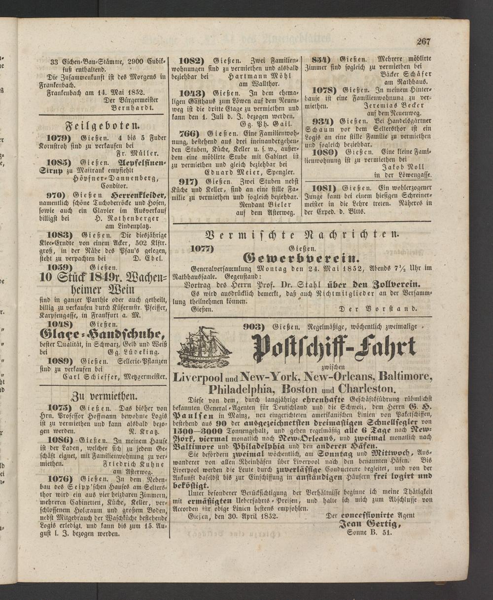 Anzeigeblatt für die Provinzialhauptstadt Gießen. 1840-1867