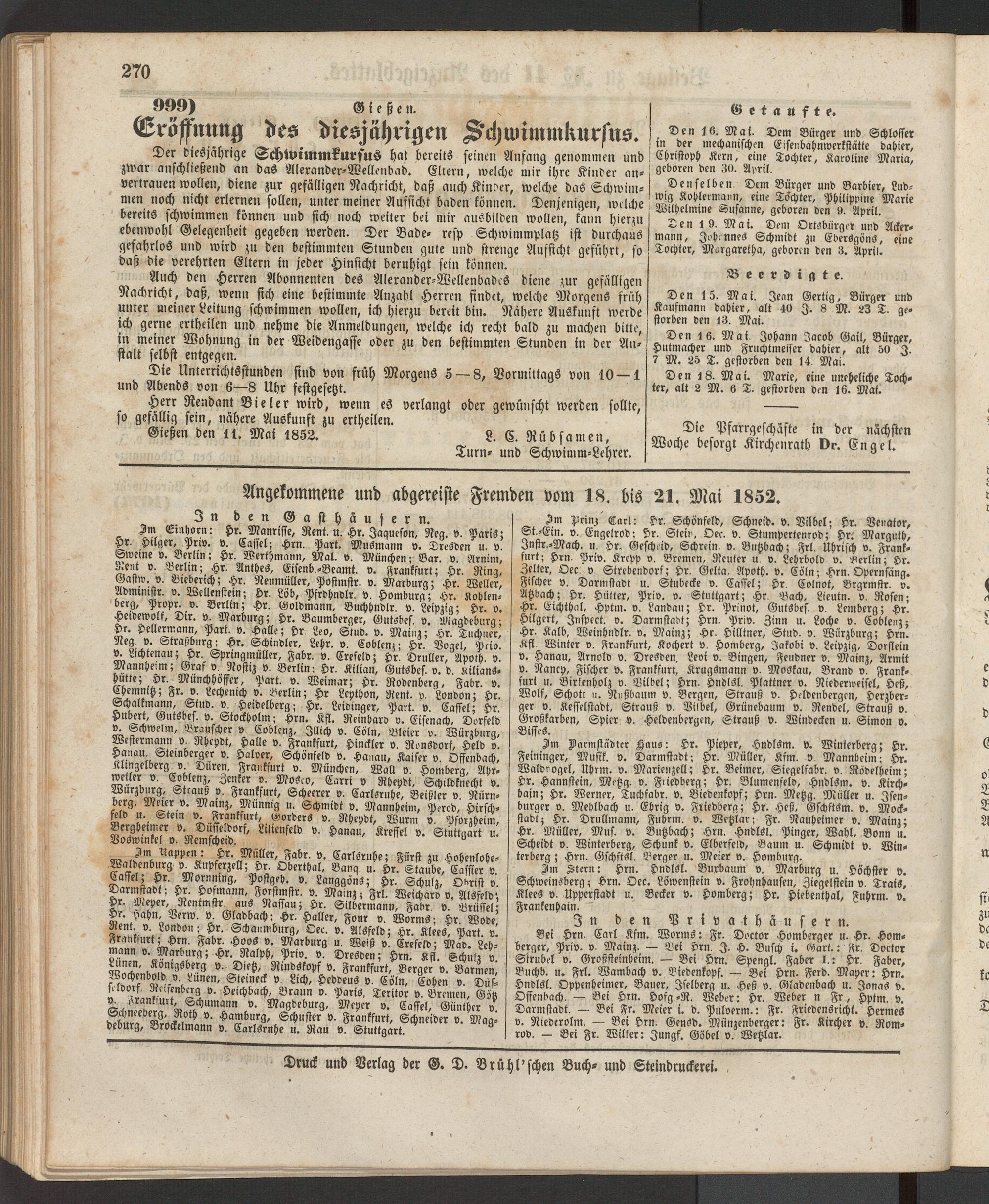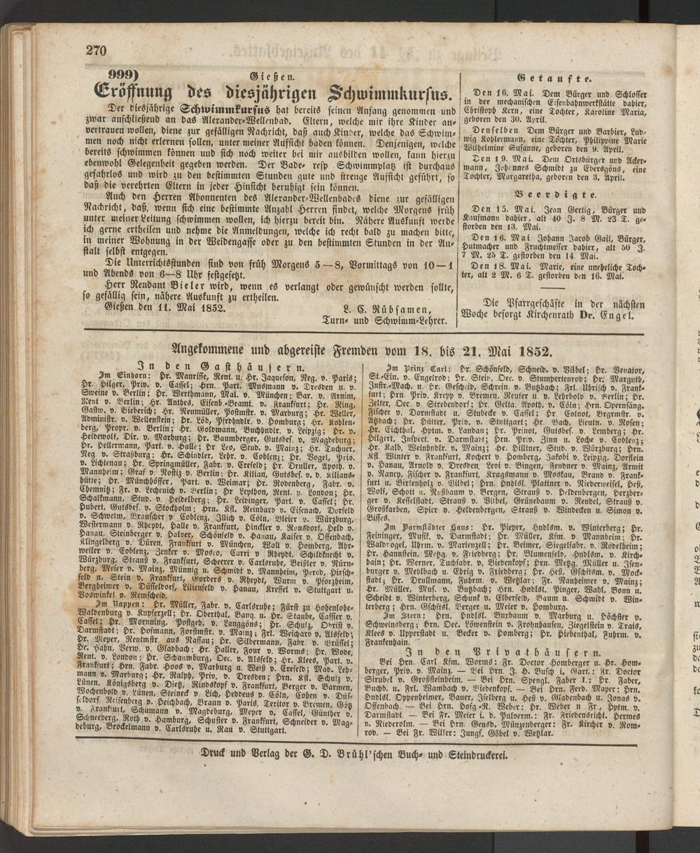 Anzeigeblatt für die Provinzialhauptstadt Gießen. 1840-1867