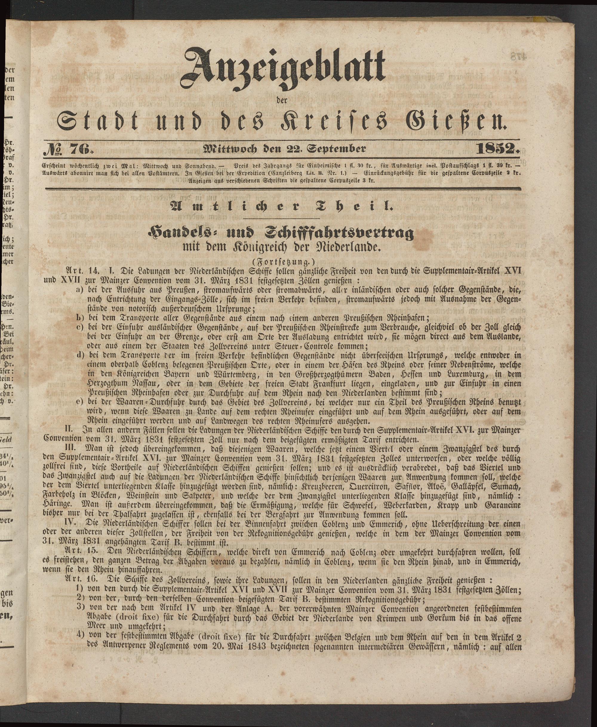 Anzeigeblatt für die Provinzialhauptstadt Gießen. 1840-1867