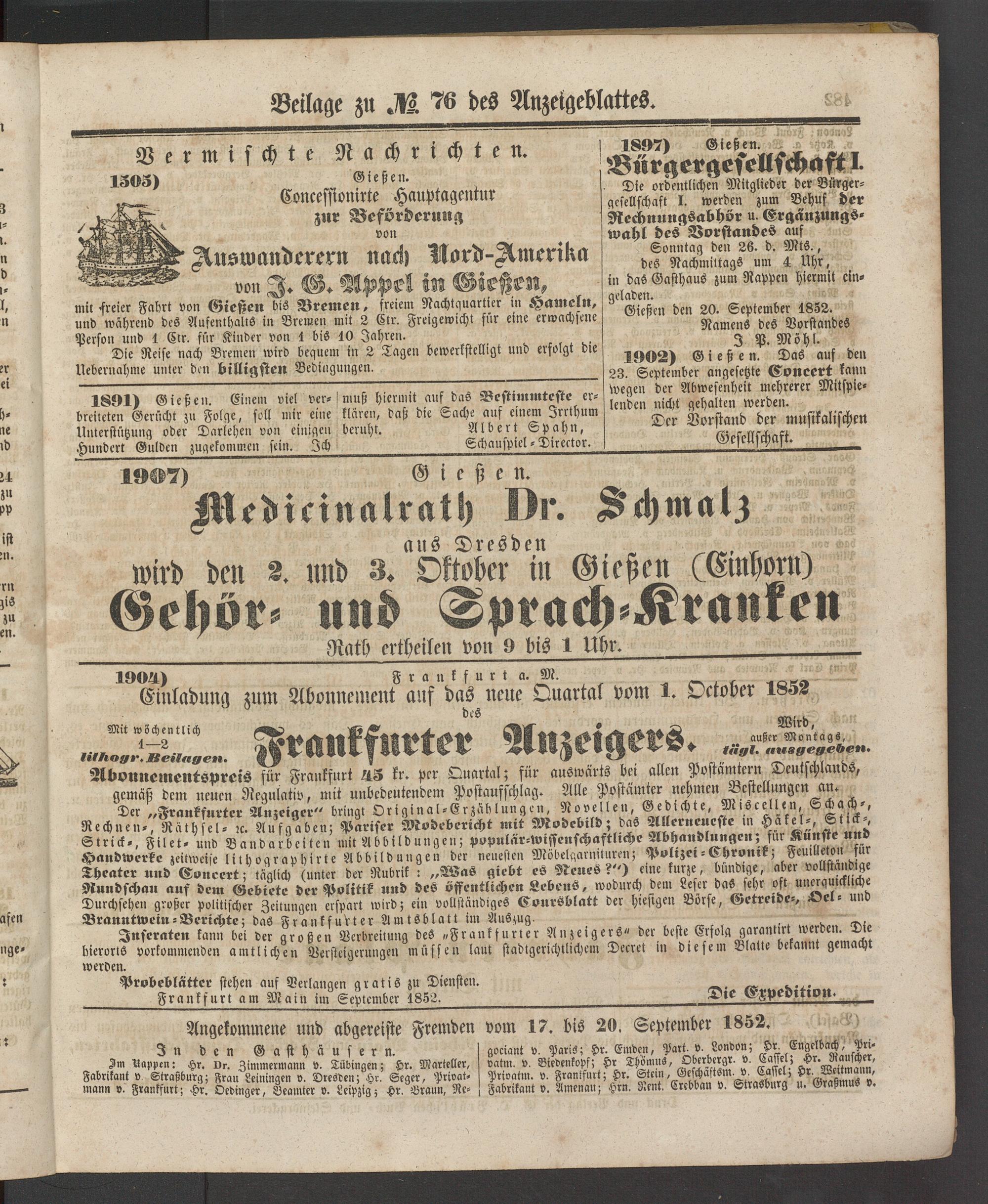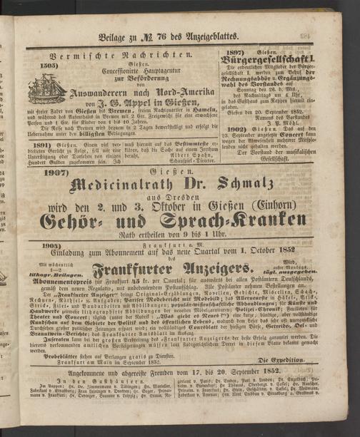 Anzeigeblatt für die Provinzialhauptstadt Gießen. 1840-1867