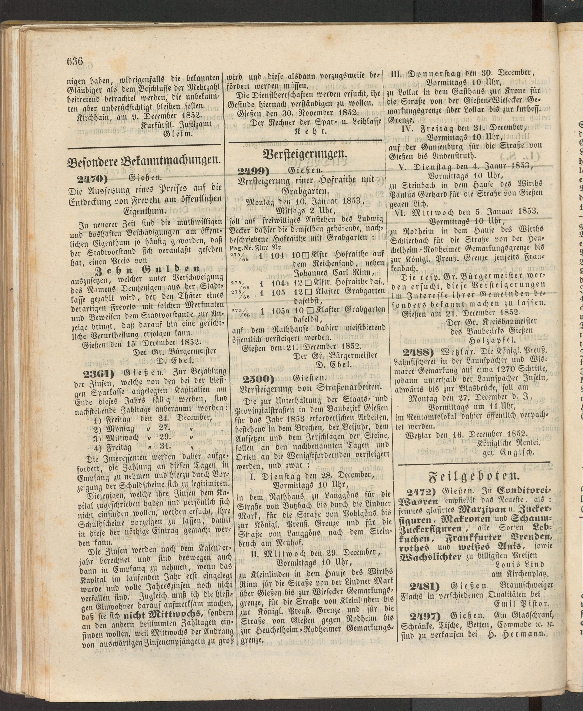 Anzeigeblatt für die Provinzialhauptstadt Gießen. 1840-1867