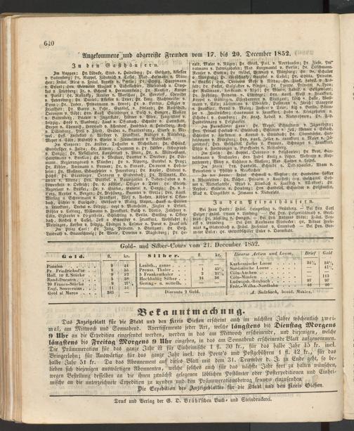 Anzeigeblatt für die Provinzialhauptstadt Gießen. 1840-1867