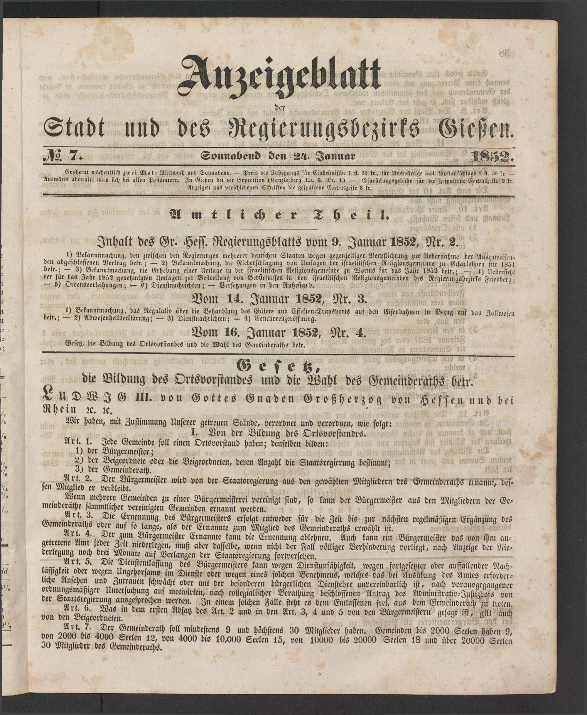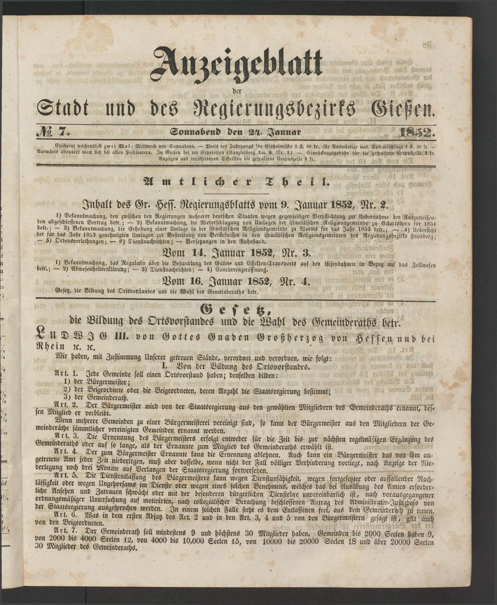 Anzeigeblatt für die Provinzialhauptstadt Gießen. 1840-1867