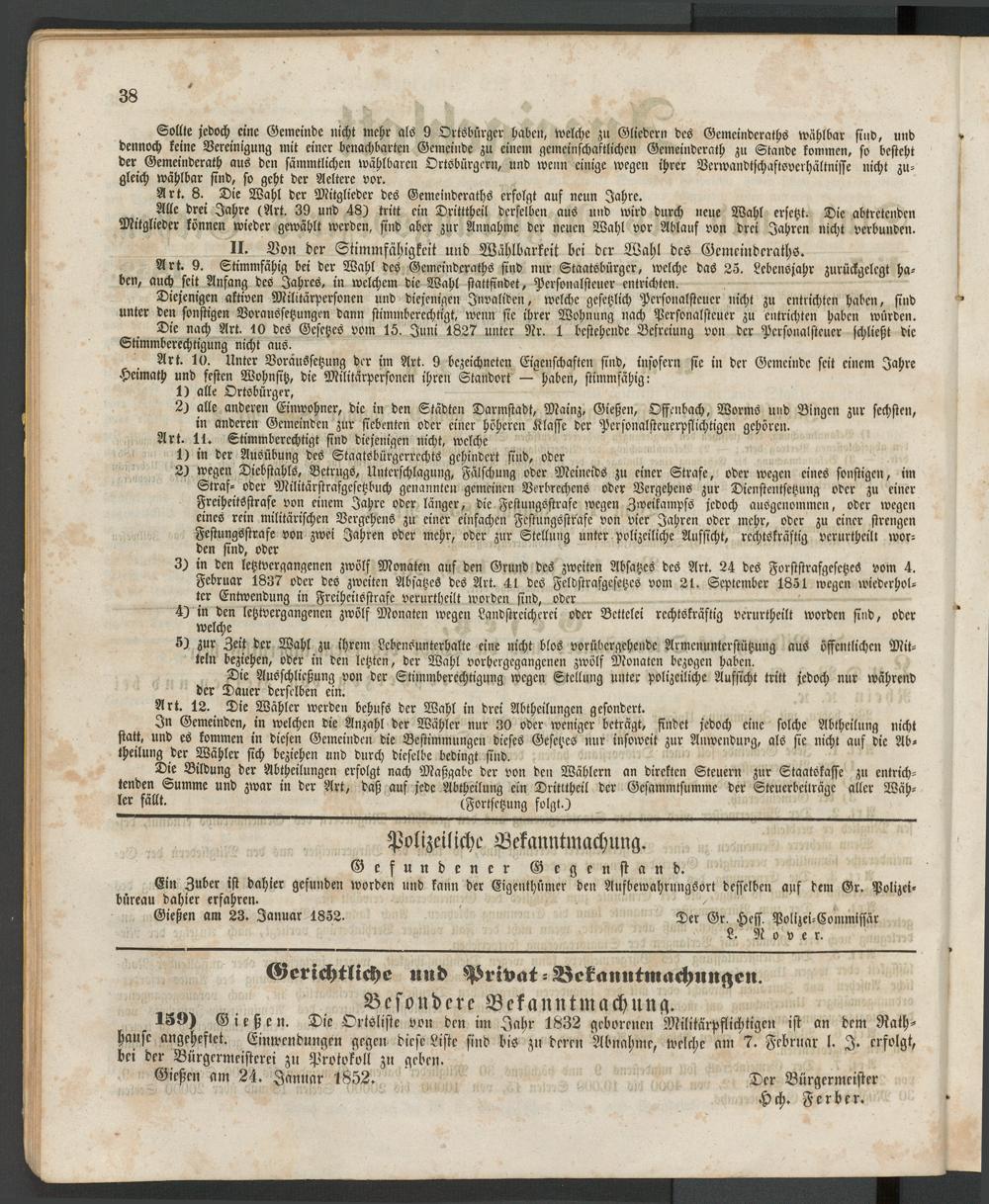 Anzeigeblatt für die Provinzialhauptstadt Gießen. 1840-1867
