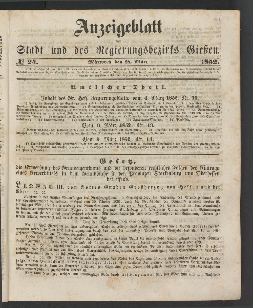 Anzeigeblatt für die Provinzialhauptstadt Gießen. 1840-1867